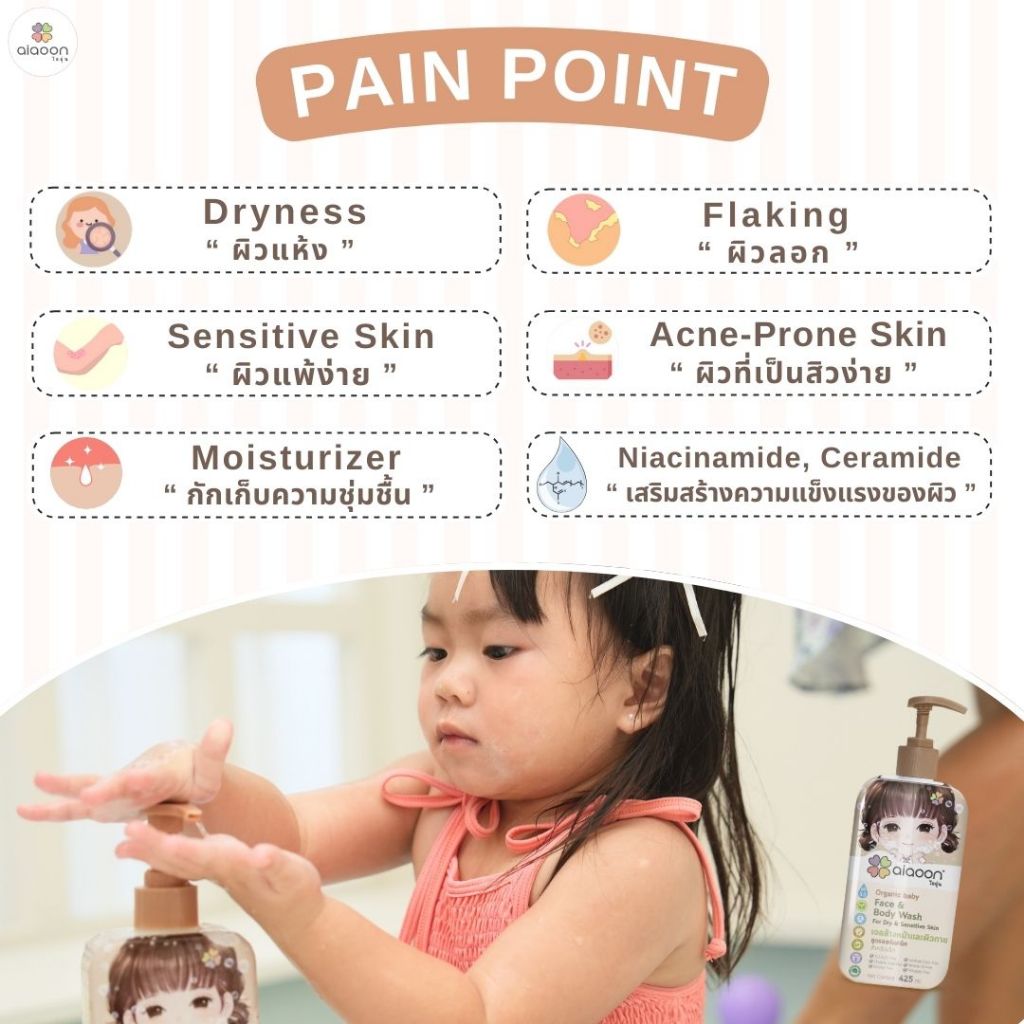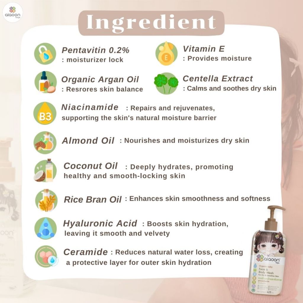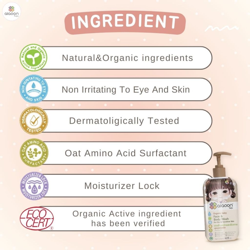 ไออุ่น เจลล้างหน้าและอาบน้ำ สูตรออร์แกนิค สำหรับเด็ก 425ml.(Organic Baby Face & Body Wash For Dry)