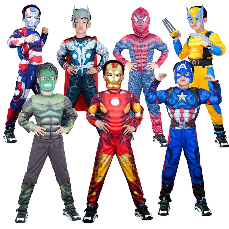*พร้อมส่งในไทย* ชุดซุปเปอร์ฮีโร่ แฟนซีเด็ก เครื่องแต่งกายเด็กชาย มาร์เวลกัปตันอเมริกาสไปเดอร์แมน มีกล้ามสุดเท่