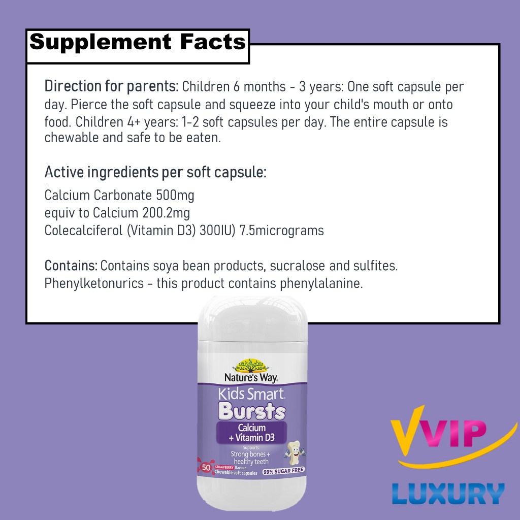 exp03/2027 Nature's Way Kids Smart Calcium + Vitamin D 50 Chewable Capsules
