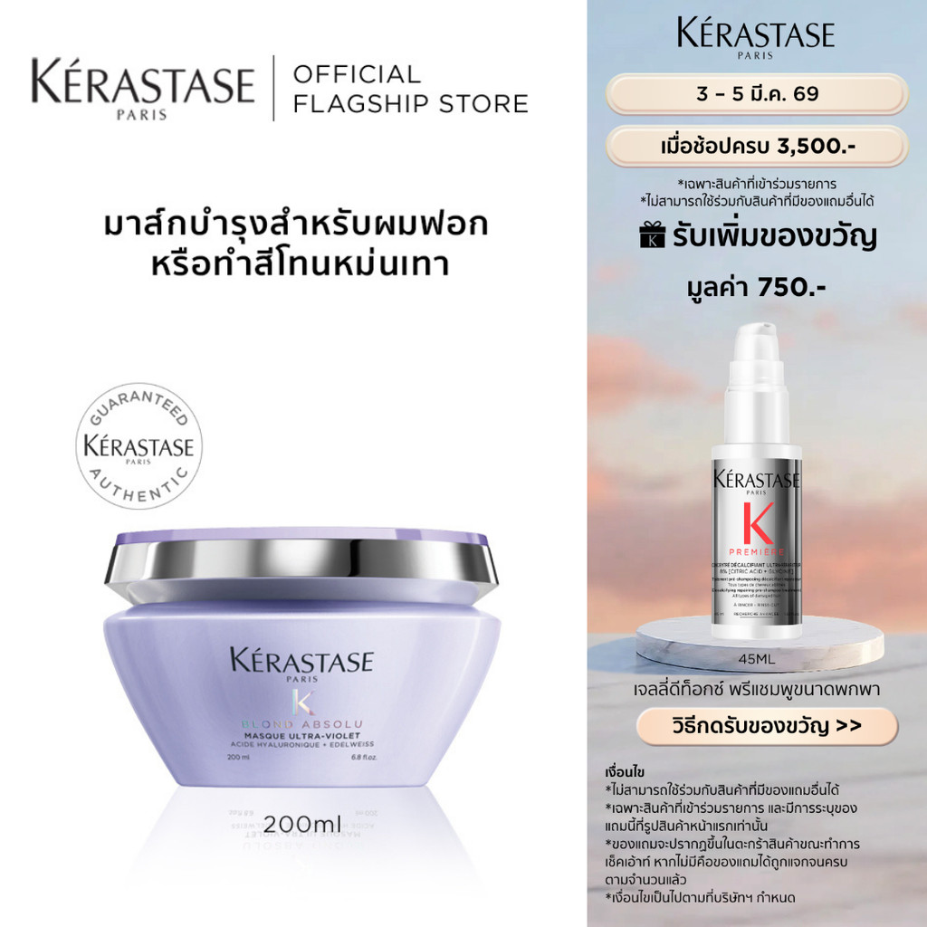 KERASTASE Blond Absolu มาส์กบำรุงสำหรับผมทำสีโทนหม่น เทา บลอนด์ ผ่านการฟอกผม 200มล (เคเรสตาส,ผมฟอก, ผมทำสี,แชมพูม่วง)
