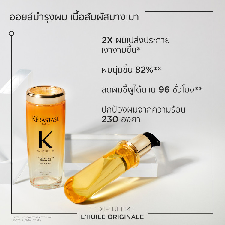 [รีฟิล] Elixir Ultime อิลิกเซีย ออยล์สกัดจากดอกคามิลเลีย เนื้อออยล์บางเบา เพื่อผมนุ่มเปล่งประกายเงางามขึ้น รีฟิล75มล.