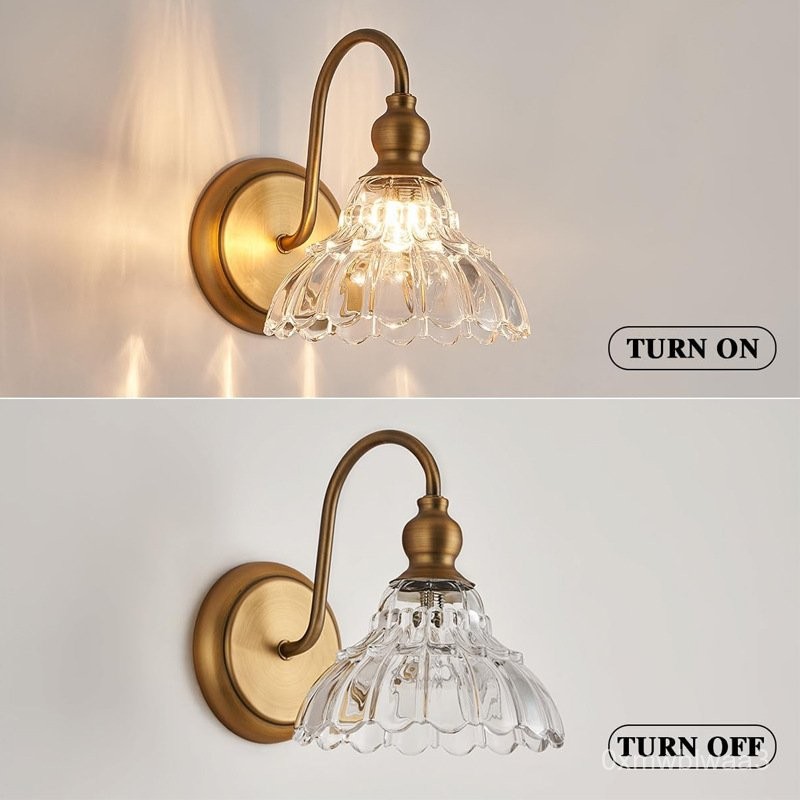 ฝาแก้วคริสตัลวินเทจโคมไฟติดผนังสีทองห้องน้ำห้องนอนโคมไฟข้างเตียงโคมไฟติดผนังทางเดิน OURR