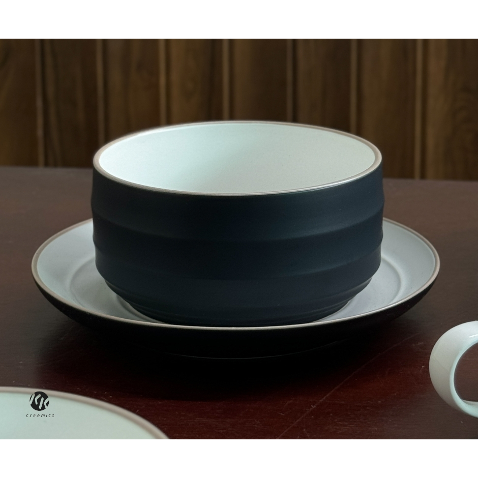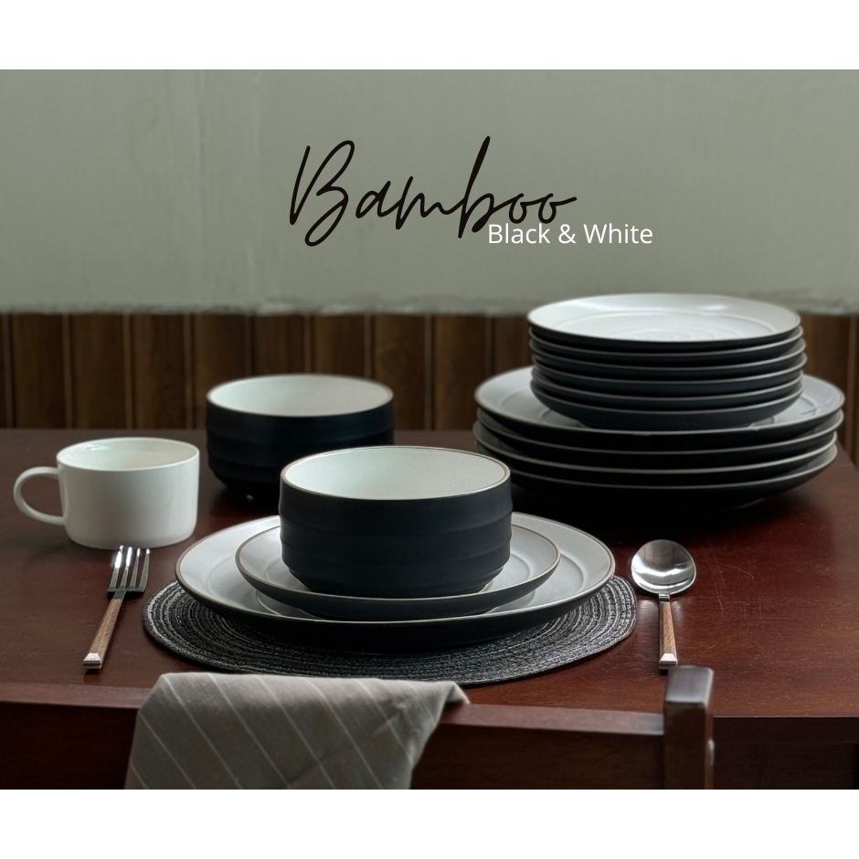 จานชามเซรามิค จานเซรามิค ถ้วยเซรามิค สีขาวดำ สีทูโทน ชุด Bamboo