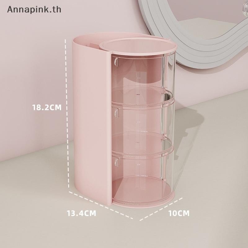 Ank หมุนกล่องเก็บเครื่องสําอางพัฟแต่งหน้าแต่งหน้าไข่ที่วางชั้นวางกันฝุ่นเดสก์ท็อป Remover แปรงผ้าฝ้ายชั้นเก็บ Organizer EN