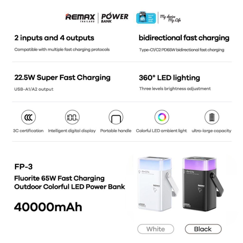[ CCC ] Remax Power Bank 40000mAh รุ่น RPP-596 (N) แบตสำรอง ชาร์จเร็ว 65W มีประกันศูนย์ไทย มาตรฐาน มอก.