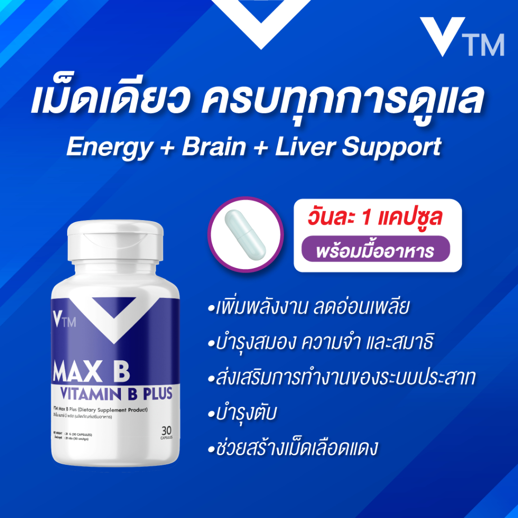 VTM Max B วิตามินบีรวม + Inositol + Choline เสริมสมอง ระบบประสาท ต้านเครียด ลดเหนื่อย บำรุงร่างกาย