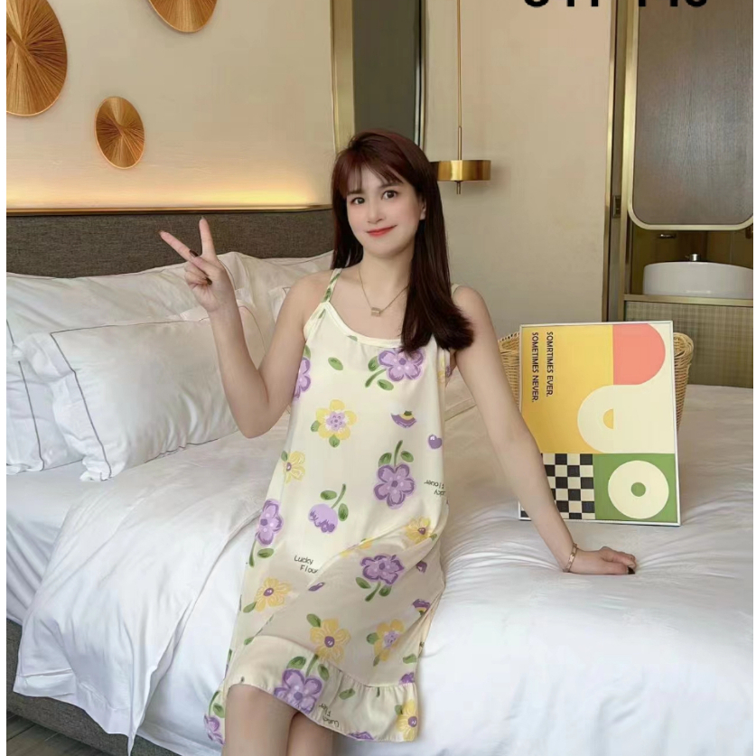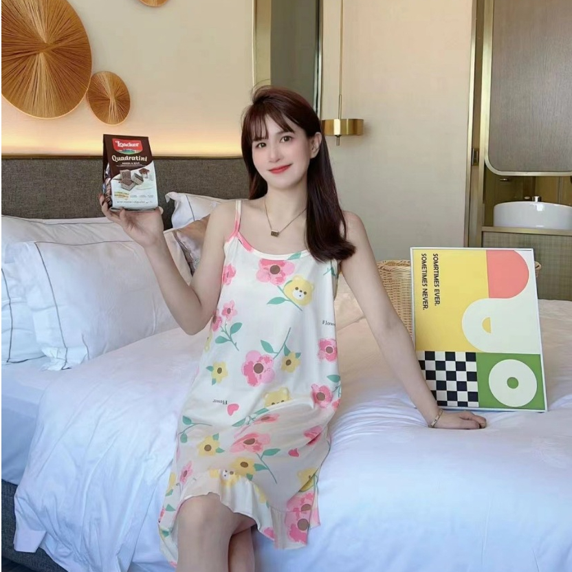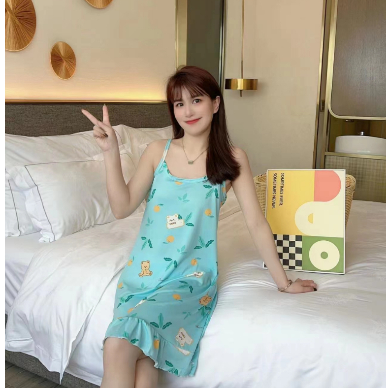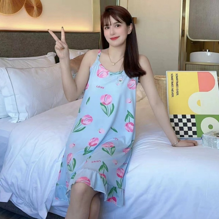 🚚COD🚚น่ารัก กระโปรง ชุดนอนสายเดี่ยวกระโปรง ผ้านิ่ม ใส่สบาย ลายพิมพ์บางเฉียบ ใส่ได้ทั้งคนผอมและคนอ้วน Q341