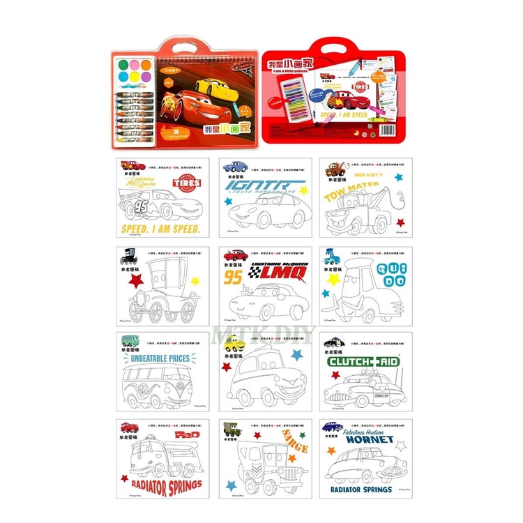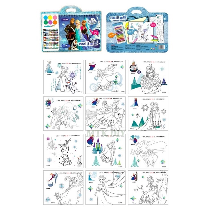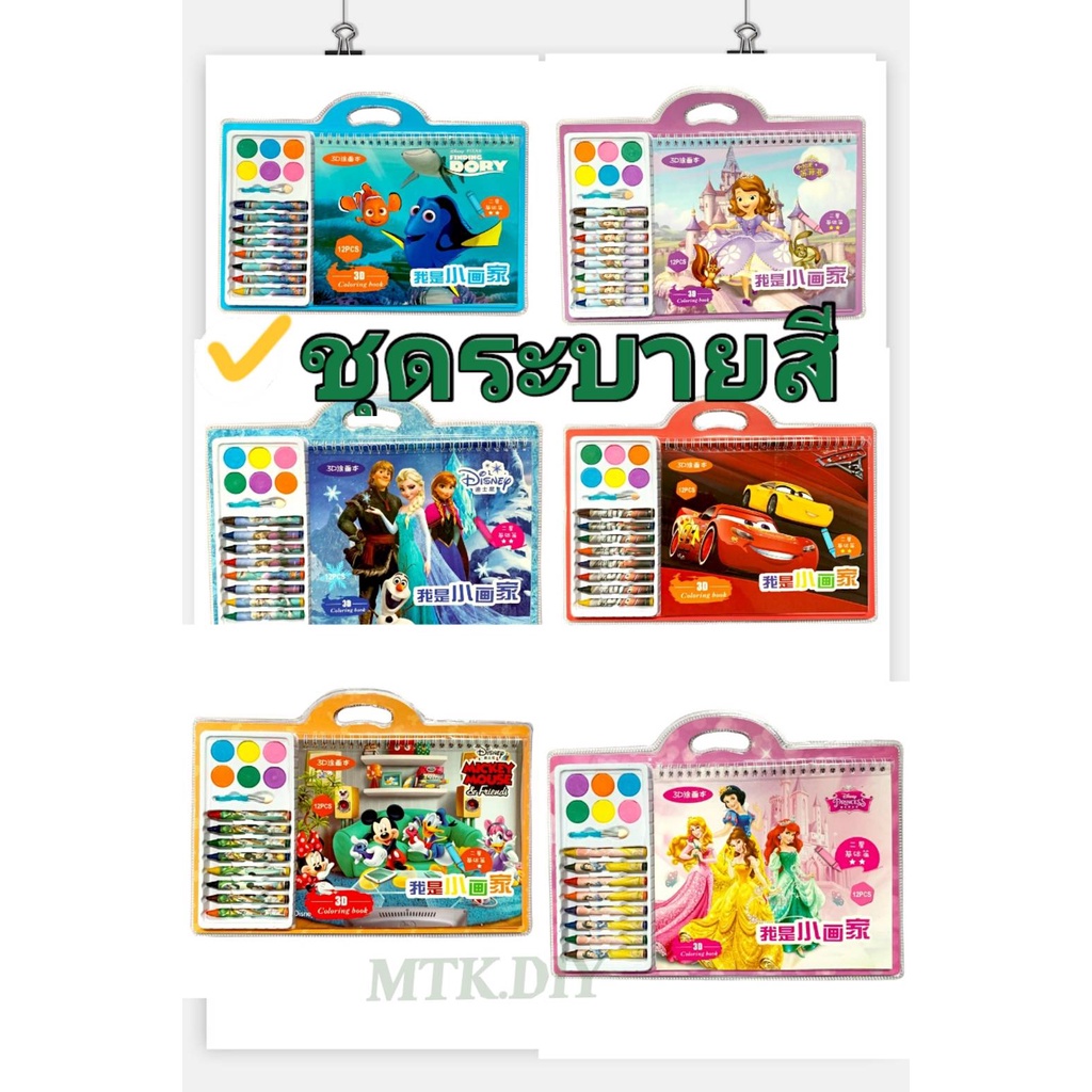 ร้อมส่ง สมุดระบายสี (3)(d) 12หน้า พร้อมสีเทียน และสีผงแห้ง มี6ลายให้เลือก