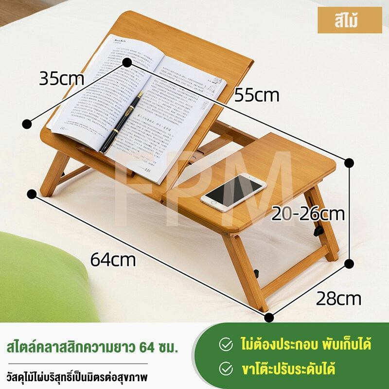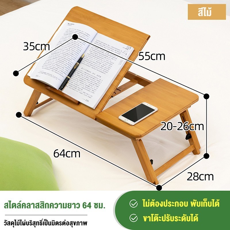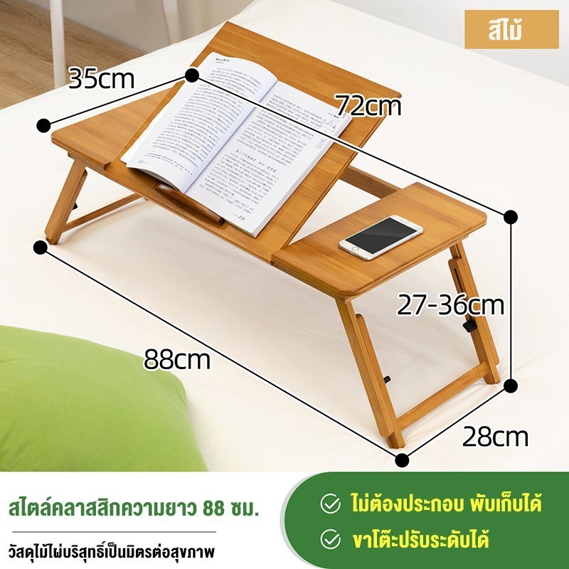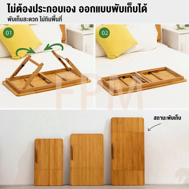 โต๊ะพับ อเนกประสงค์ ต๊ะอาหาร โต๊ะญี่ปุ่น น้ำหนักเบา ทนทาน โต๊ะบนเตียง ทำโดยไม้ไผ่ธรรมชาติ