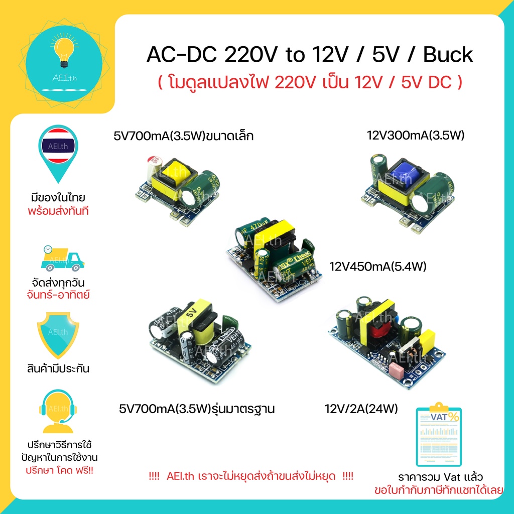 AC-DC โมดูลแปลงแรงดัน 220V to 5V 12V DC / Buck Module โมดูลเพาเวอร์ซัพพลาย มีของในไทยพร้อมส่งทันที !!!!