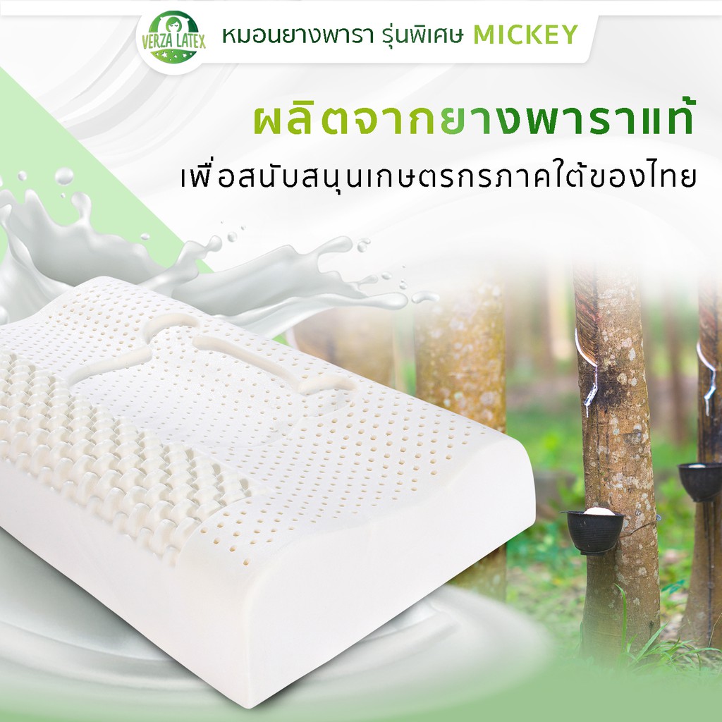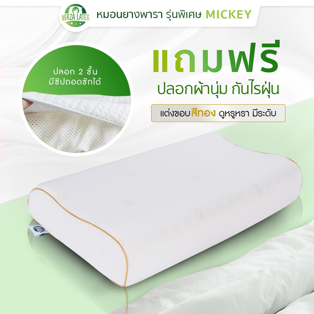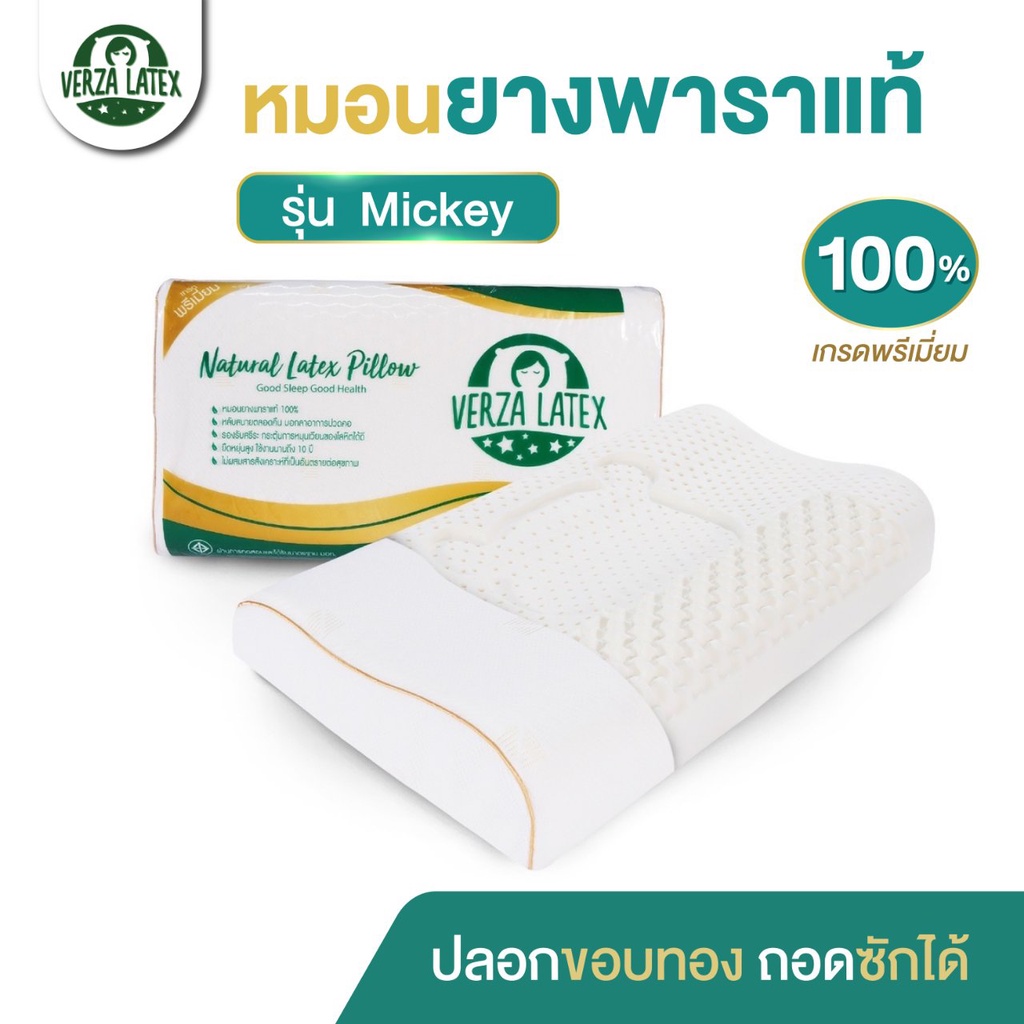 Verza Latex หมอนยางพารา รุ่น Mickey รุ่นพิเศษสำหรับส่งออกเท่านั้น พร้อมปลอกผ้ากันไรฝุ่น แต่งขอบสีทองหรูหรา ประกัน 10 ปี