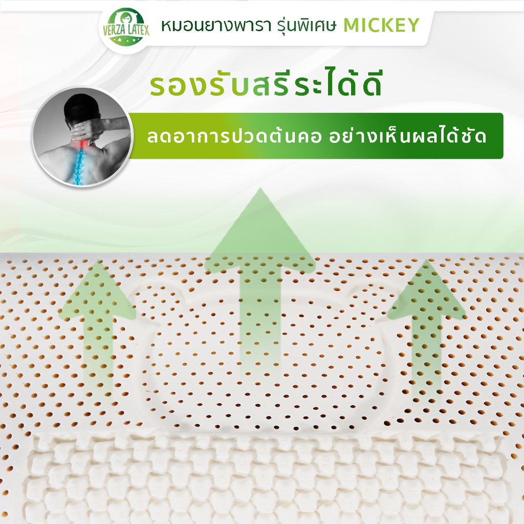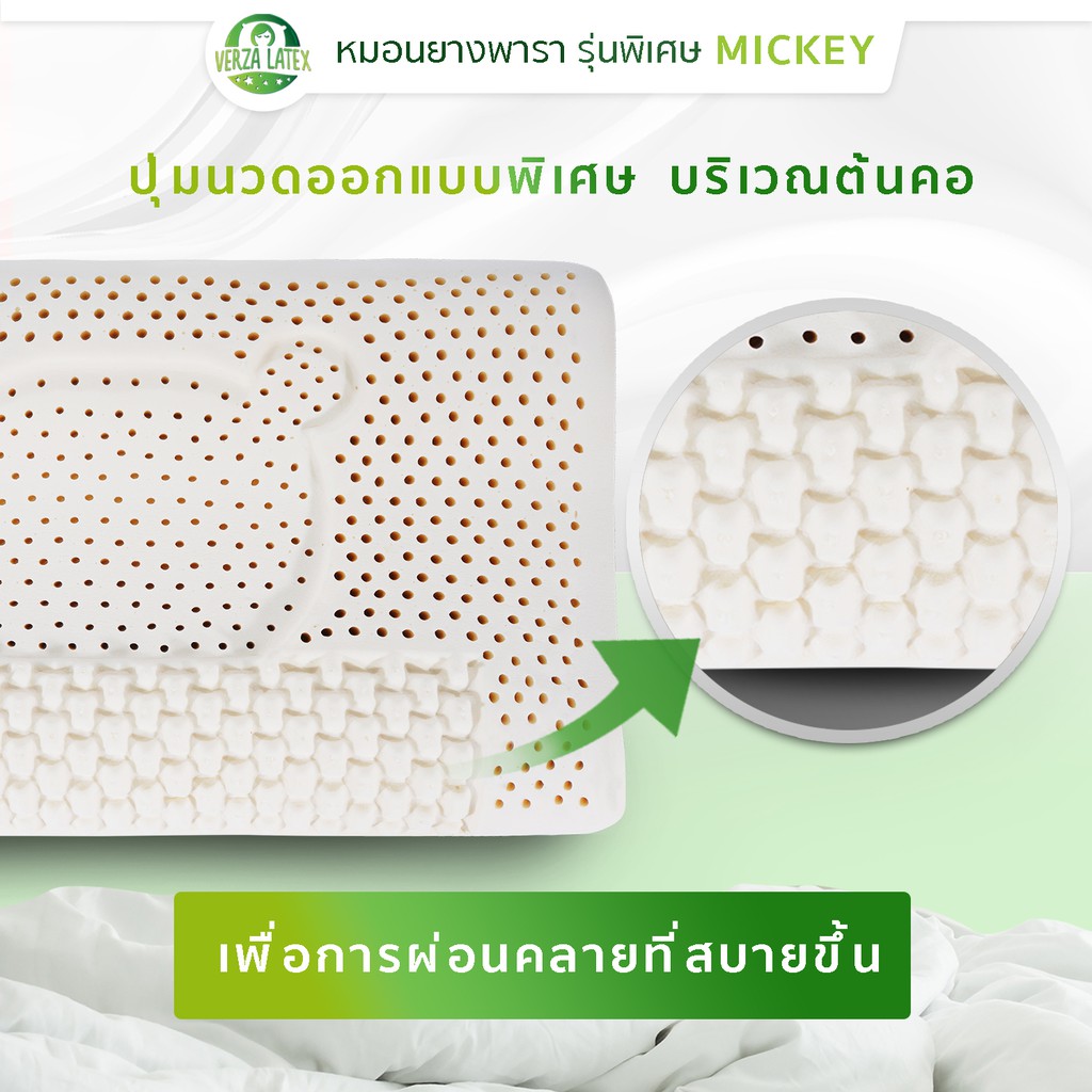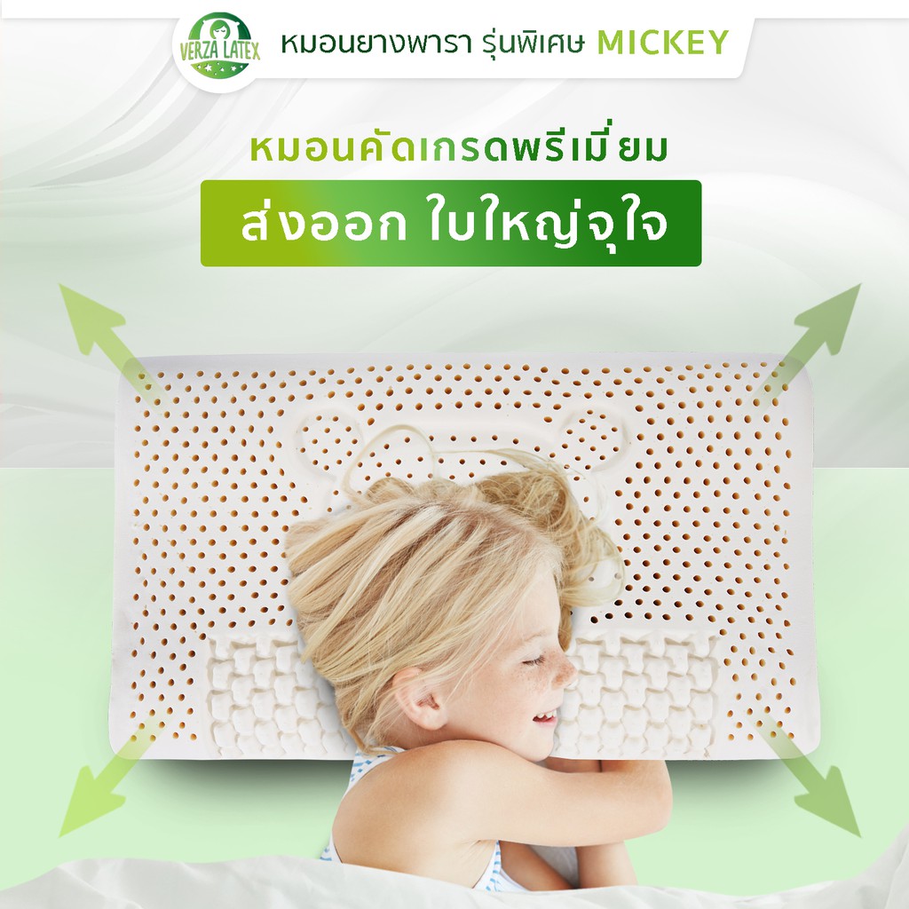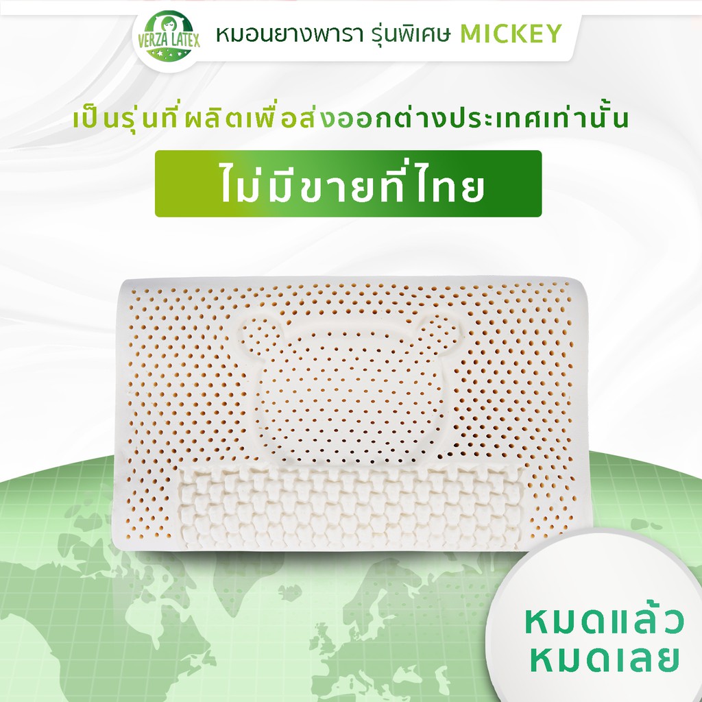 Verza Latex หมอนยางพารา รุ่น Mickey รุ่นพิเศษสำหรับส่งออกเท่านั้น พร้อมปลอกผ้ากันไรฝุ่น แต่งขอบสีทองหรูหรา ประกัน 10 ปี