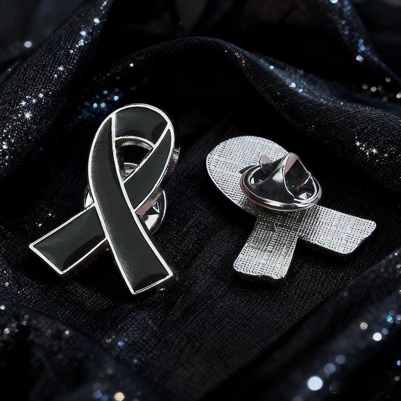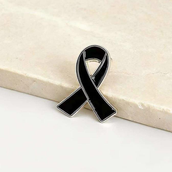 (H-055) เข็มกลัดโบว์ไว้ทุกข์ สีดำขอบเงิน สุภาพ เข็มกลัดไว้อาลัย ติดเสื้อผ้า งานพิธีการ ราชการ ผู้ชาย ผู้หญิง