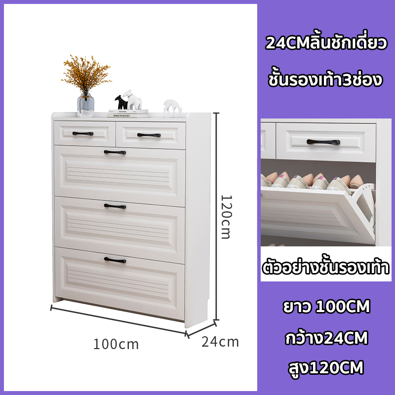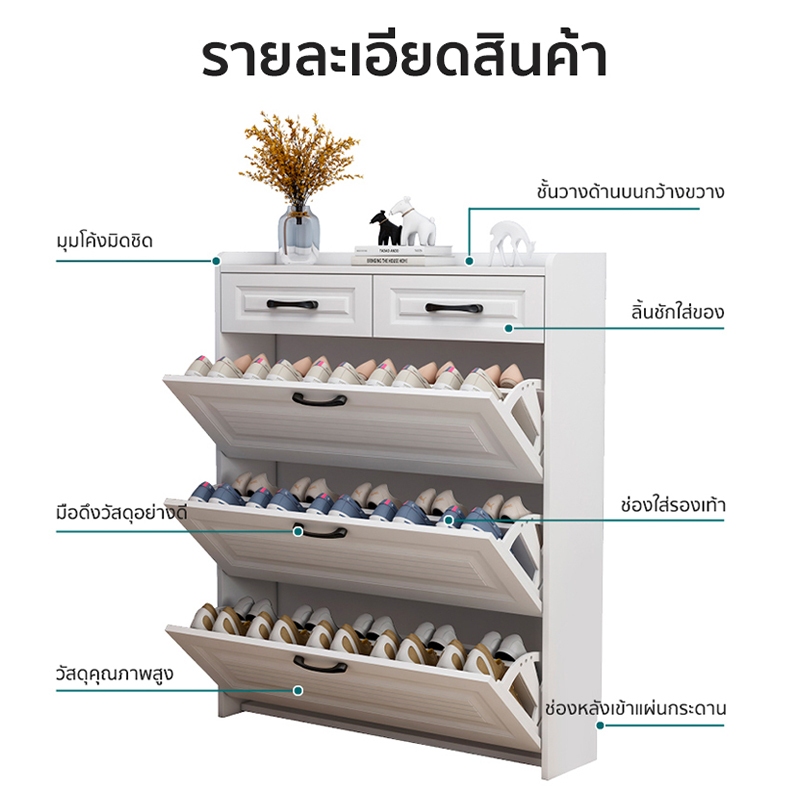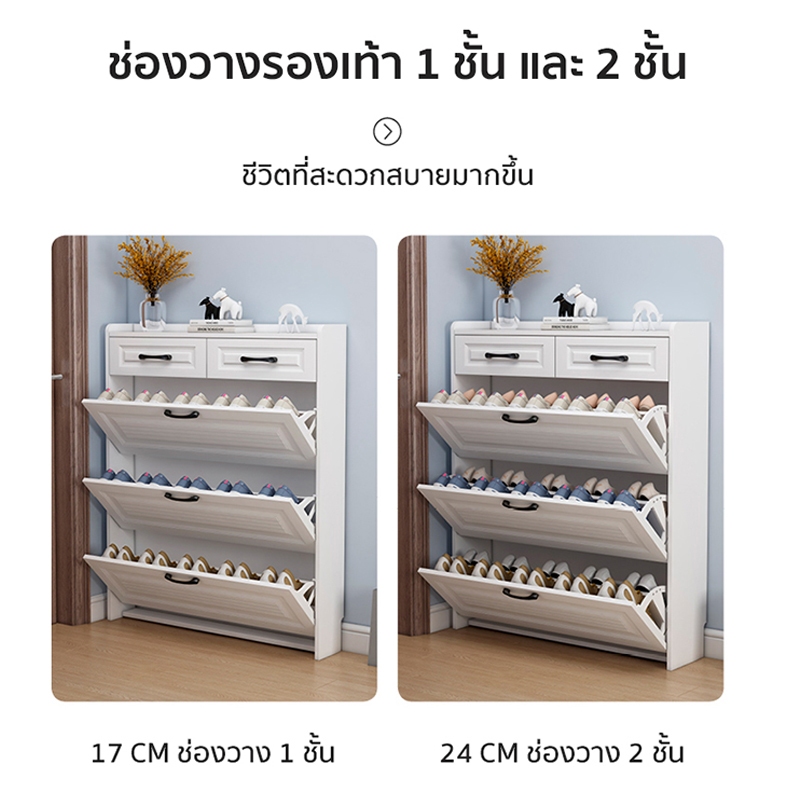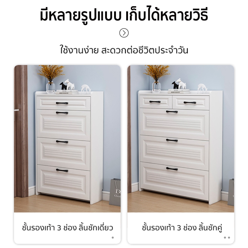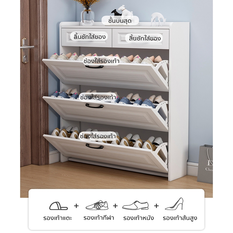 forest modern home ตู้รองเท้า บางเฉียบ ความจุสูงส 3ชั้น สีขาว ไม้คุณภาพดี ชั้นวางรองเท้าแบบพลิกคว่ำ