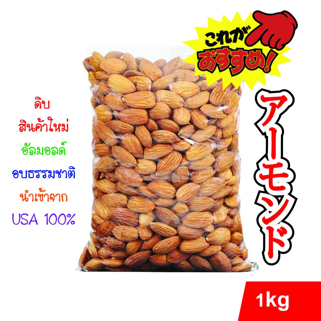 อัลมอนด์ เม็ดดิบ เกรดพรีเมี่ยม 1 kg นำเข้าจาก 🇺🇲 USA