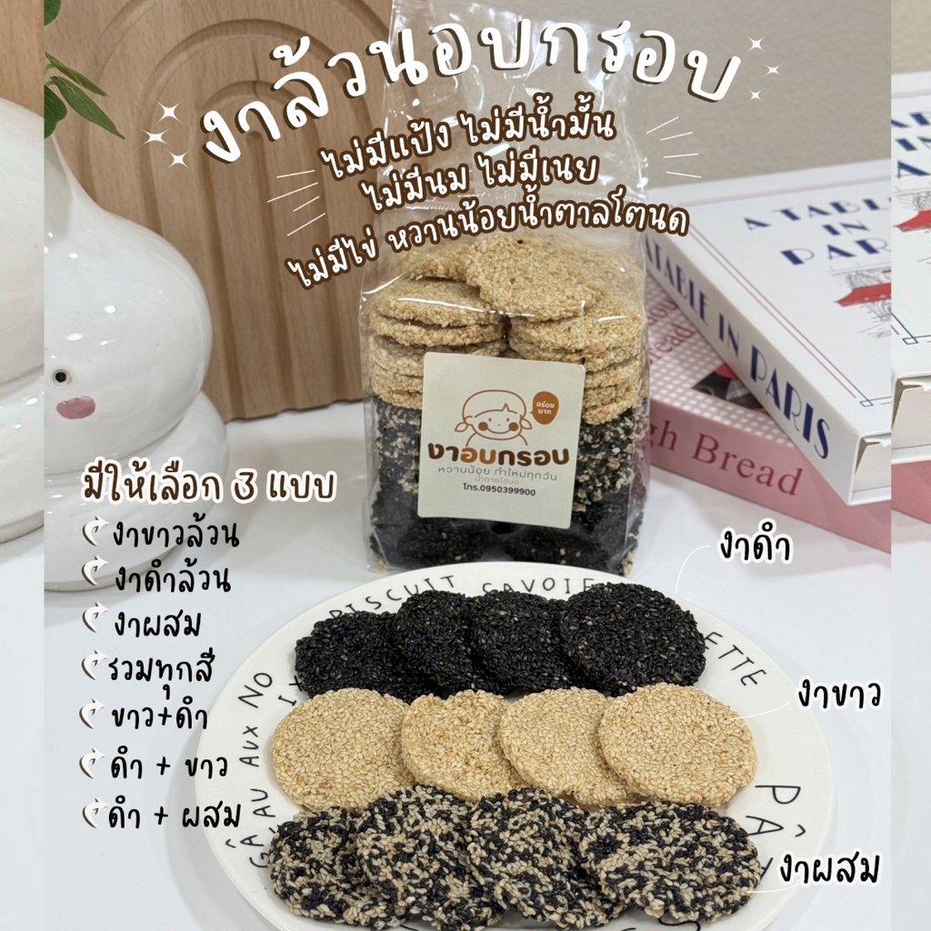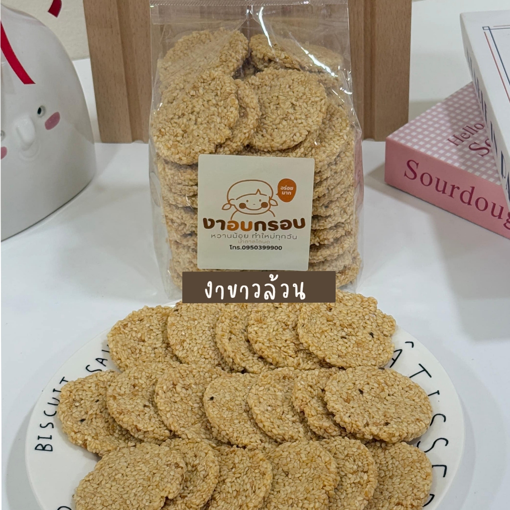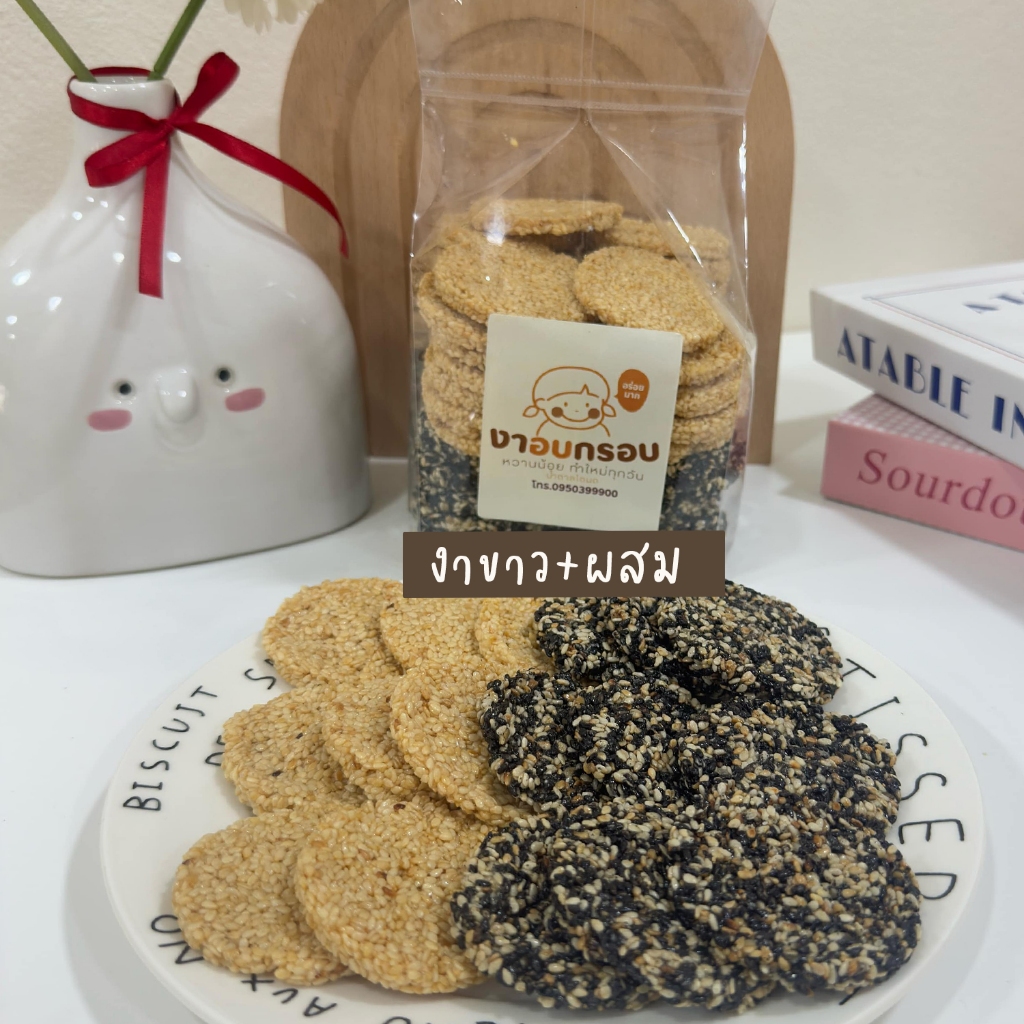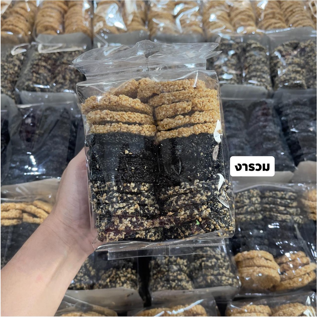ขนมงาล้วนอบกรอบน้ำตาลโตนดไม่เหนียวไม่แข็งไม่ติดฟันขนาด500กรัม