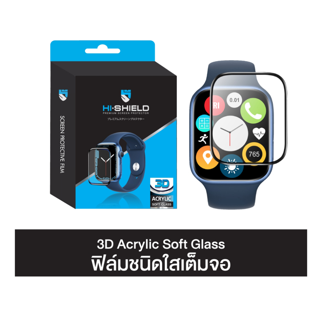 Hishield - ฟิล์มกึ่งกระจกสำหรับ Apple Watch Series 7/8/10 (41,42,45,46mm) รุ่น 3D Acrylic Soft Glass