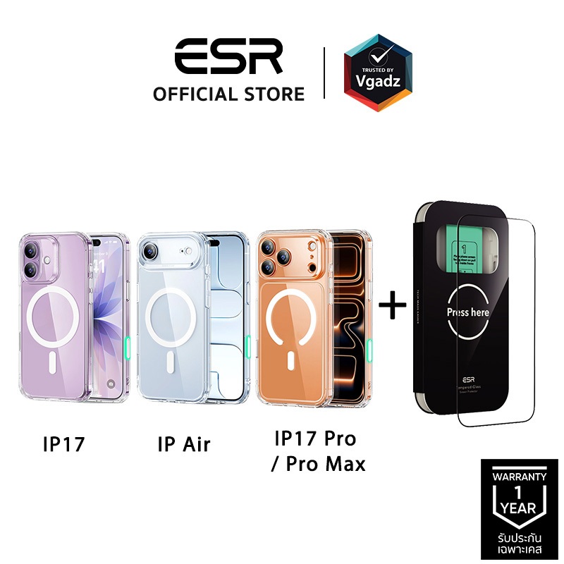 ESR เคสและชุดเคสรวมฟิล์มสำหรับ iPhone 17 / Air / 17 Pro / 17 Pro max รุ่น Classic Hybrid Case (Camera Control Button)