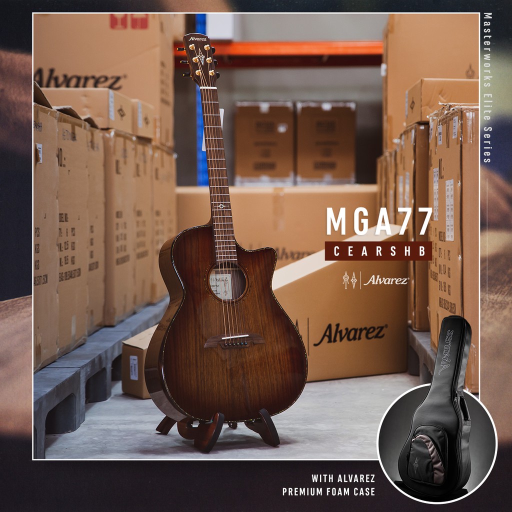 (ส่งฟรี) Alvarez MGA77CEARSHB กีตาร์โปร่งไฟฟ้าทรง GA สเปค All Solid Black Walnut พร้อมโฟ มเคส