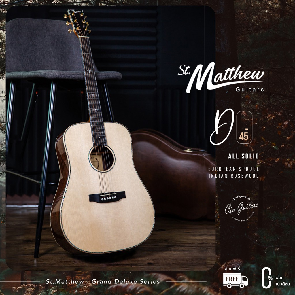 St.Matthew D-45 Deluxe I กีตาร์โปร่งทรง Dreadnought สเปค All Solid (European Spruce / Indian Rosewood)