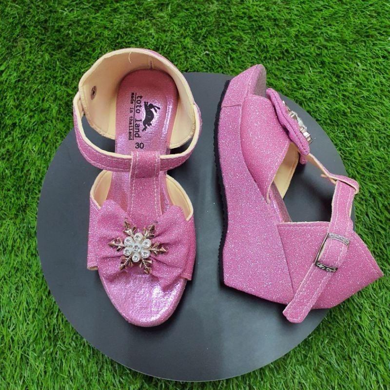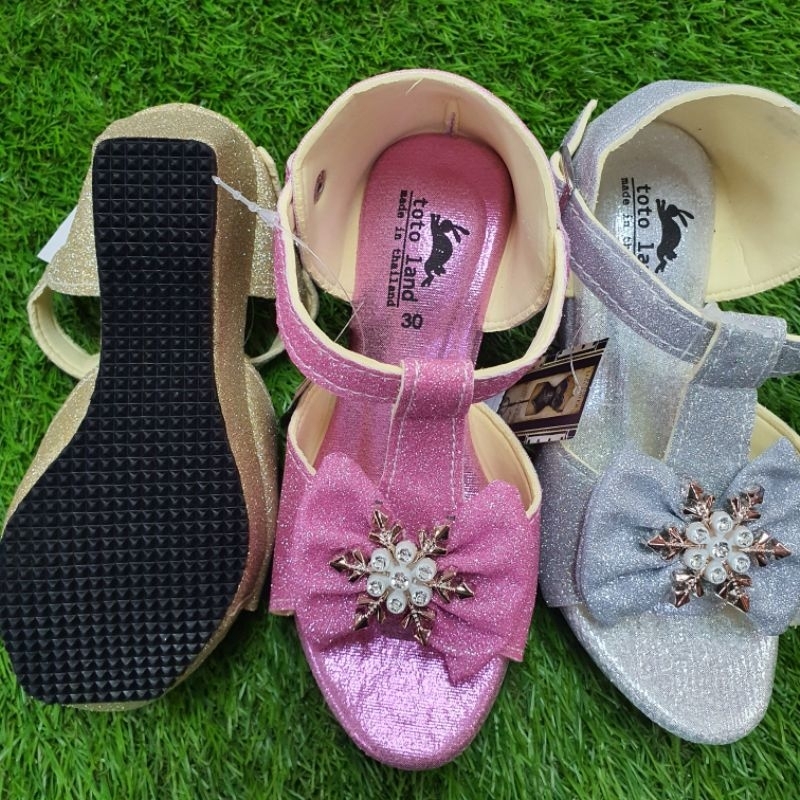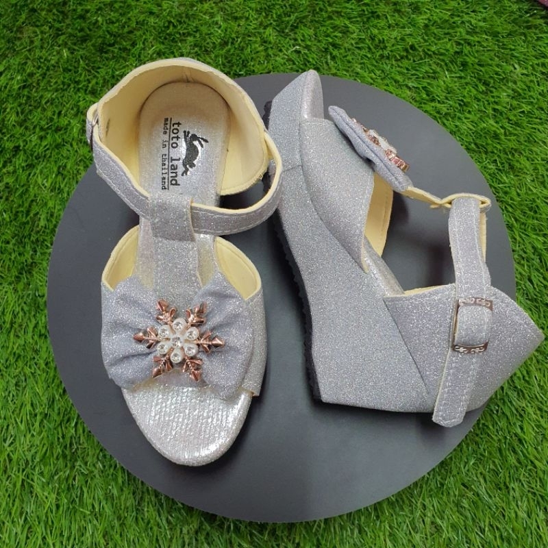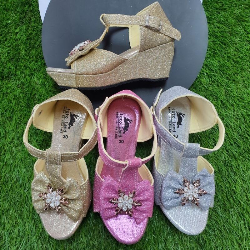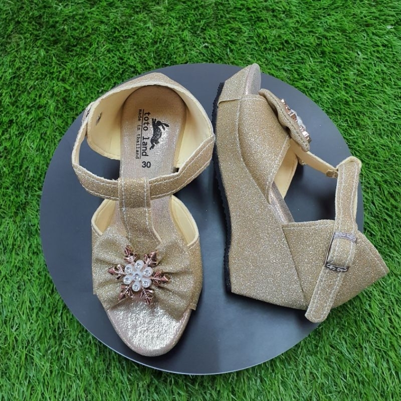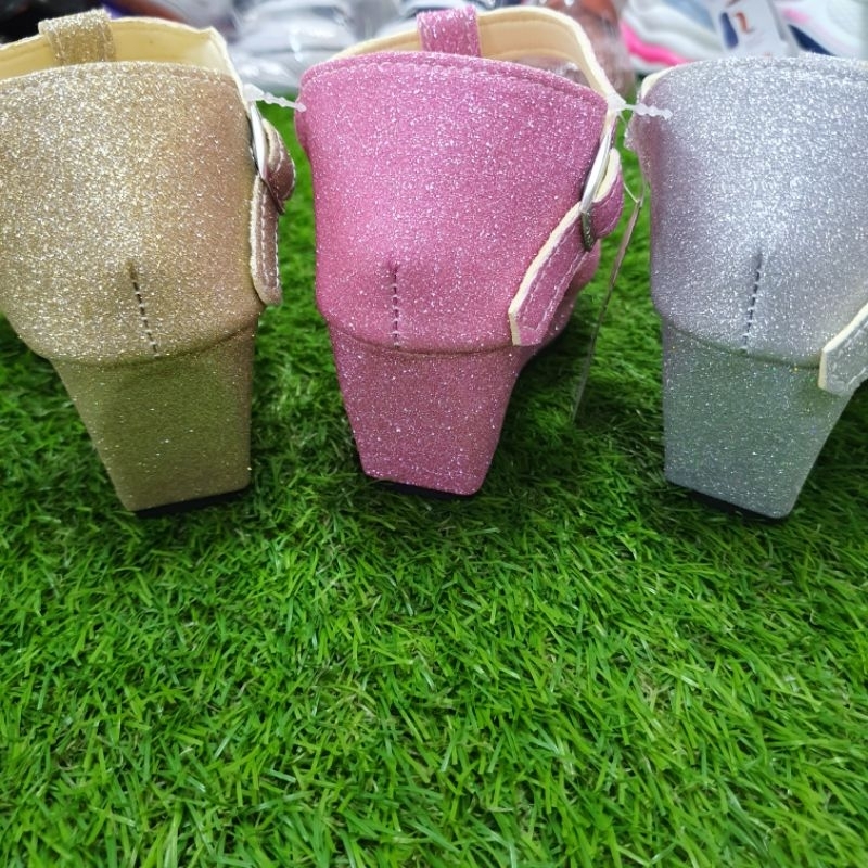 รองเท้าแฟชั่นเด็กผู้หญิงกากเพชรแบบรัดส้น ส้นเตารีด สูง 2 นิ้ว รหัส NTK021 ไซส์ 30-35