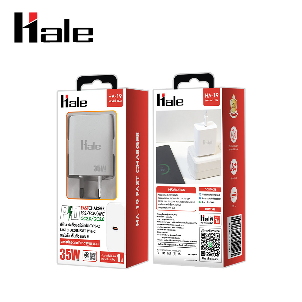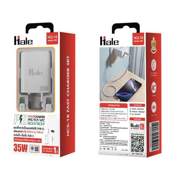 (มี มอก.) Hale 35W Fast Charge ปลั๊กชาร์จเร็ว for iphone 16 15 Type-C to Type-C For samsung oppo xiaomHCS-18