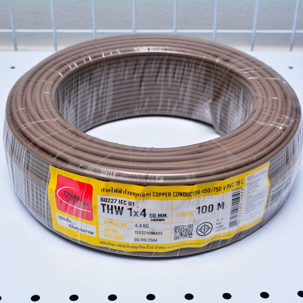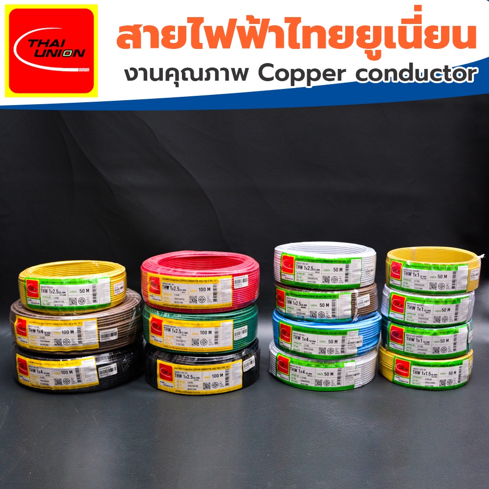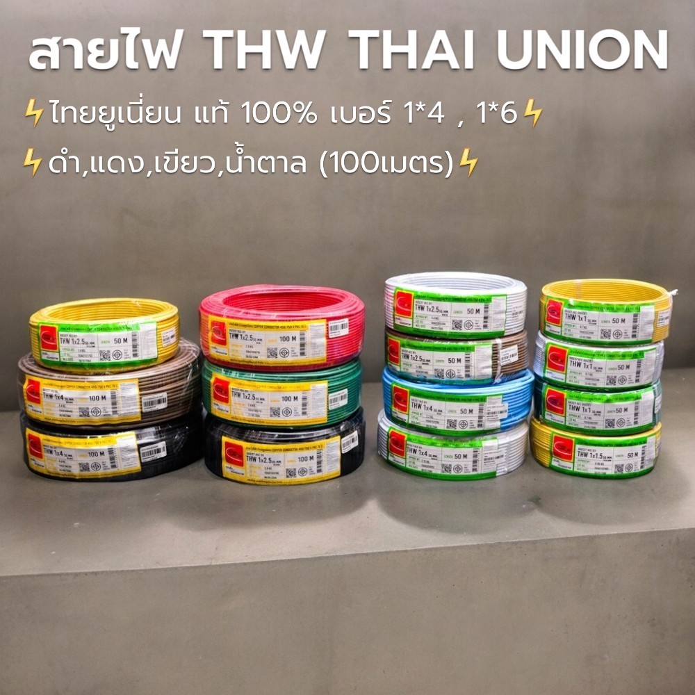 สายไฟ THW THAI UNION ไทยยูเนี่ยน แท้ 100% เบอร์ 1*4 , 1*6 ดำ,แดง,เขียว,น้ำตาล (100เมตร)