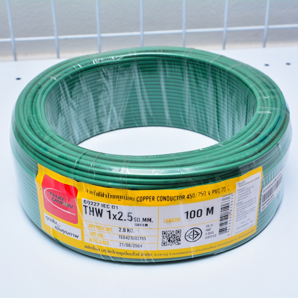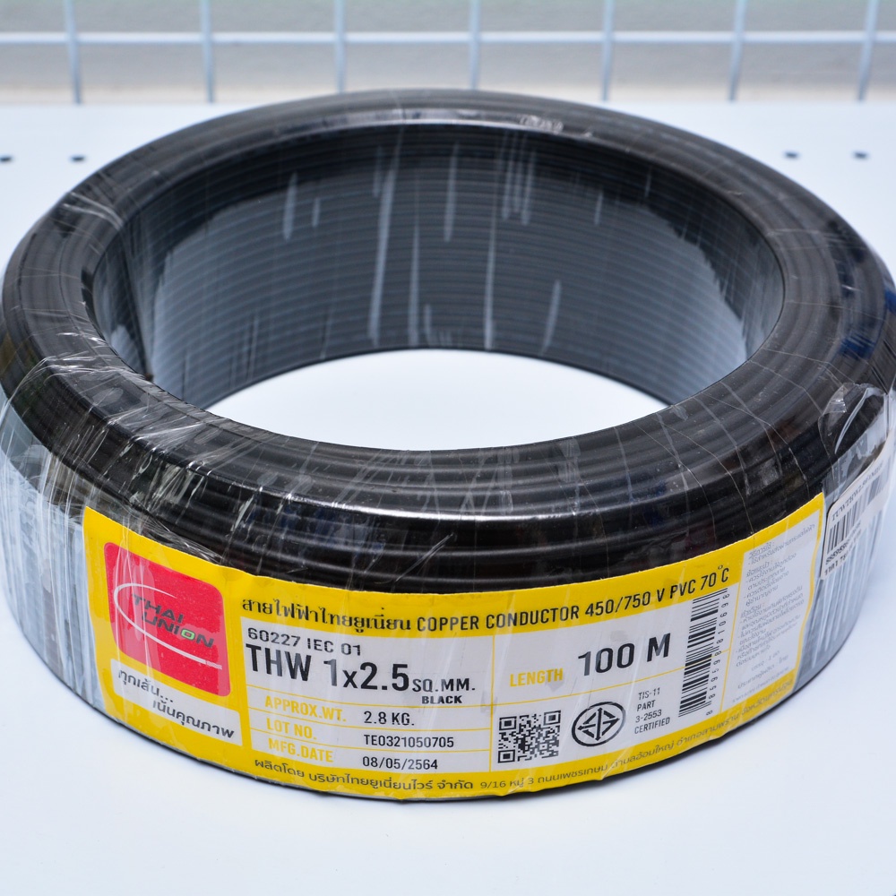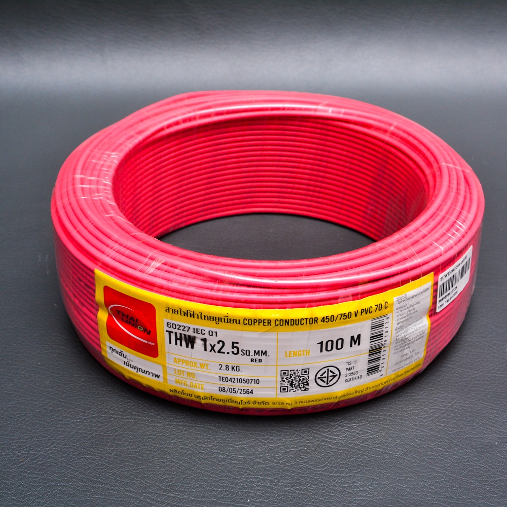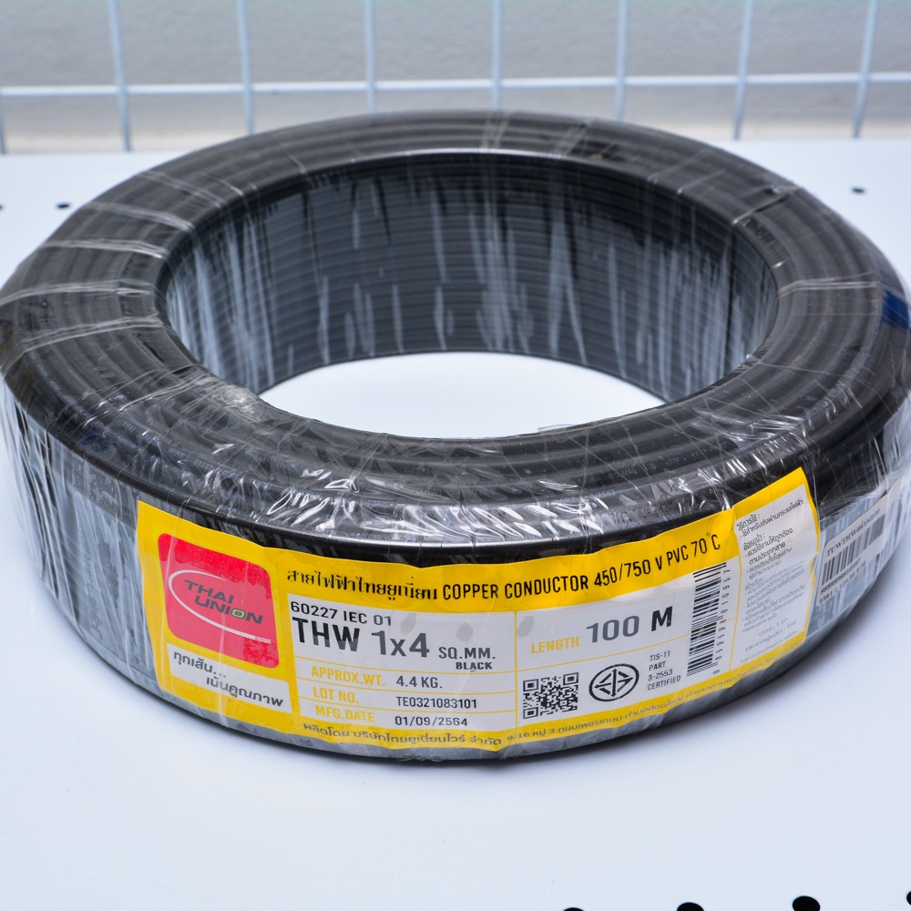 สายไฟ THW THAI UNION ไทยยูเนี่ยน แท้ 100% เบอร์ 1*4 , 1*6 ดำ,แดง,เขียว,น้ำตาล (100เมตร)