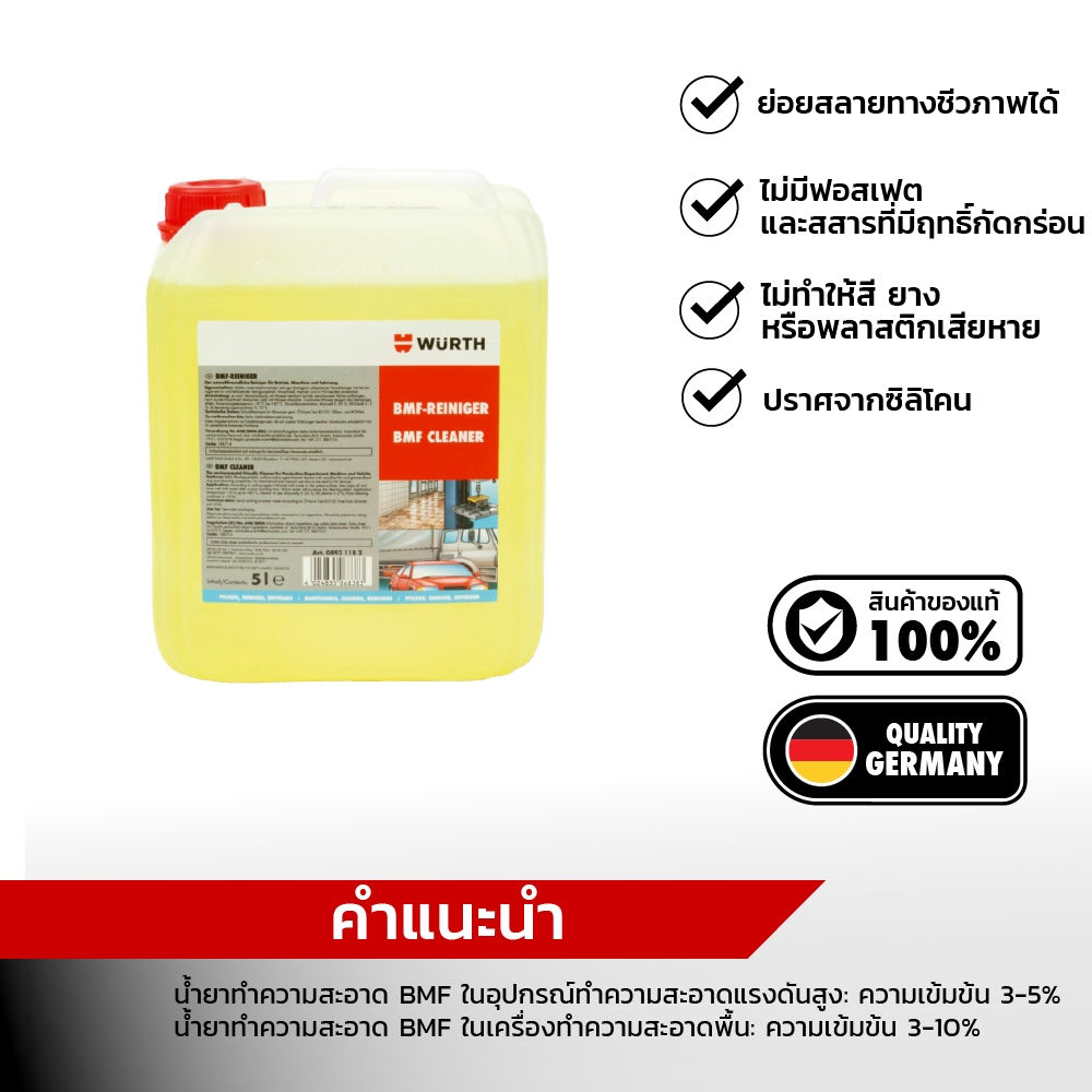 Wurth BMF Cleaner น้ ำยาทำความสะอาดอเนกประสงค์ ขจัดคราบมัน โรงงาน รถยนต์ และในครัวเรือน ขนาด 5 ลิตร