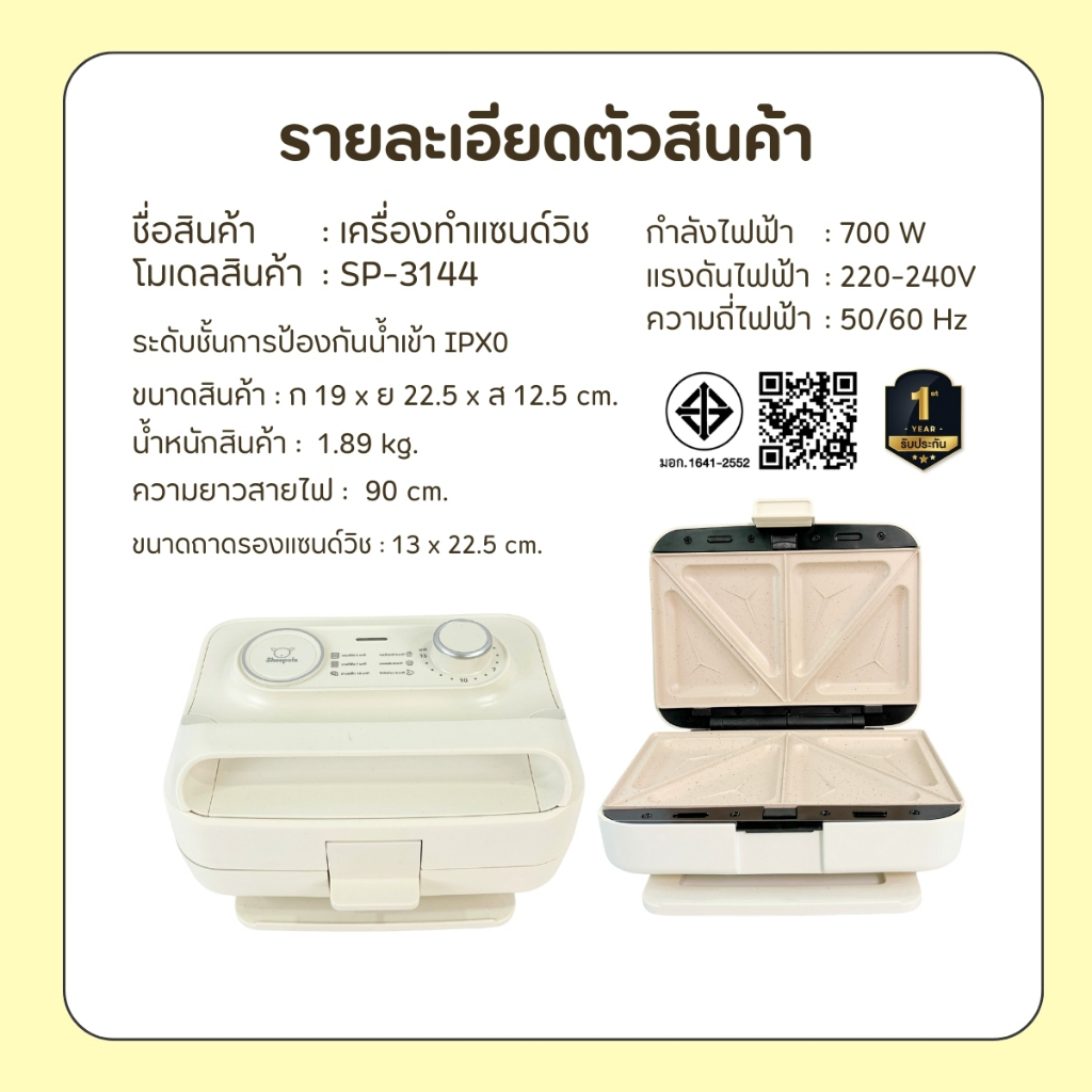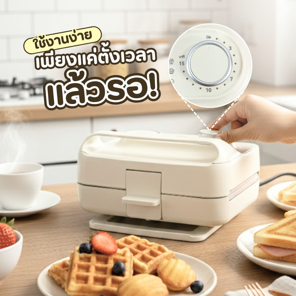 เครื่องทำแซนด์วิชอเนกประสงค์ เปลี่ยนถาดได้หลายแบบ ตั้งเวลาได้ ทำวาฟเฟิล แซนด์วิช ครบในเครื่องเดียว