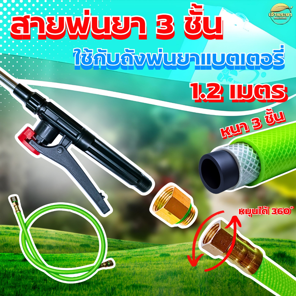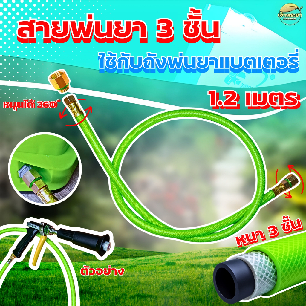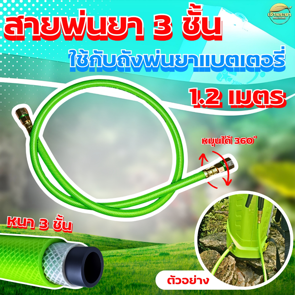 "NEW"สายพ่นยาถังพ่นยาแบตเตอรี่ รุ่นใหม่ หนา3ชั้น สีเขียว ใส่แทน สายพ่นยาแบตเดิมได้เลย ทนกว่าเดิม 10 เท่า