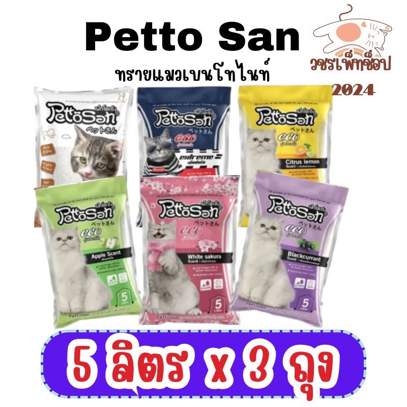 (3 ถุง)ทรายแมวเพ็ทโตะซัง Pettosan ขนาด 5 ลิตร จำนวน 3 ถุง