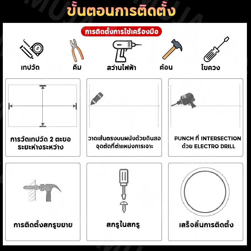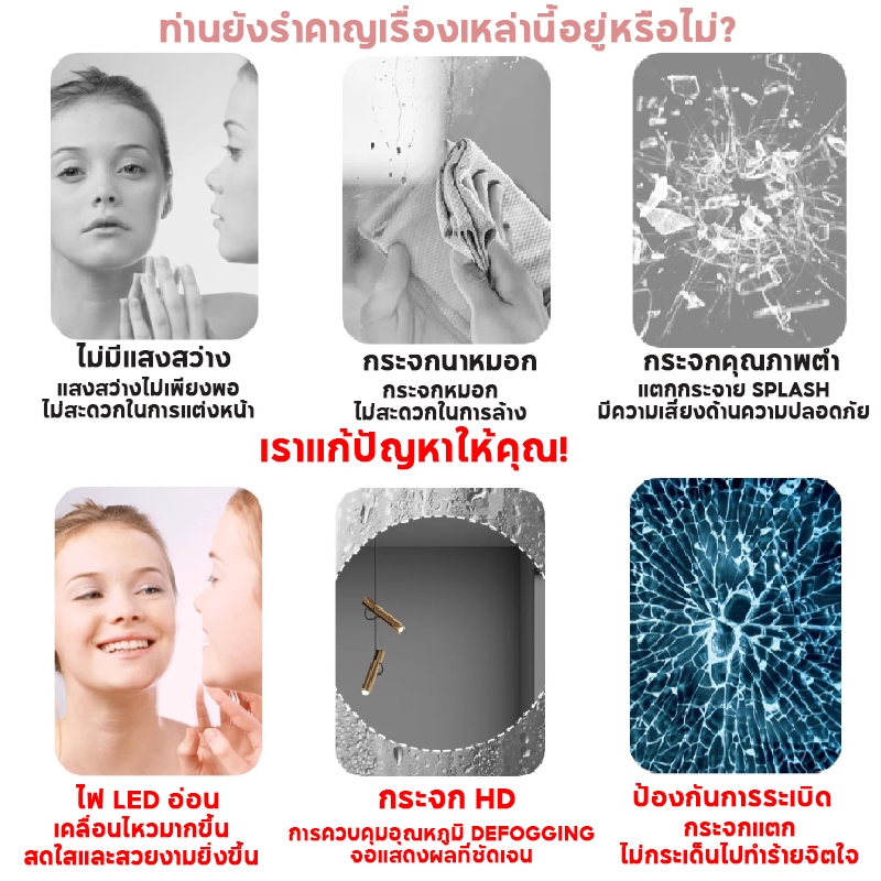 [MUJA] กระจกห้องน้ํา กระจกอัจฉริยะ กระจกสมาร์ทสแควร์ การควบคุมแบบสัมผัสสามสี, ไฟ LED กำจัดหมอก, ฟังก์ชั่นแสดงเวลาและอุณหภูมิ