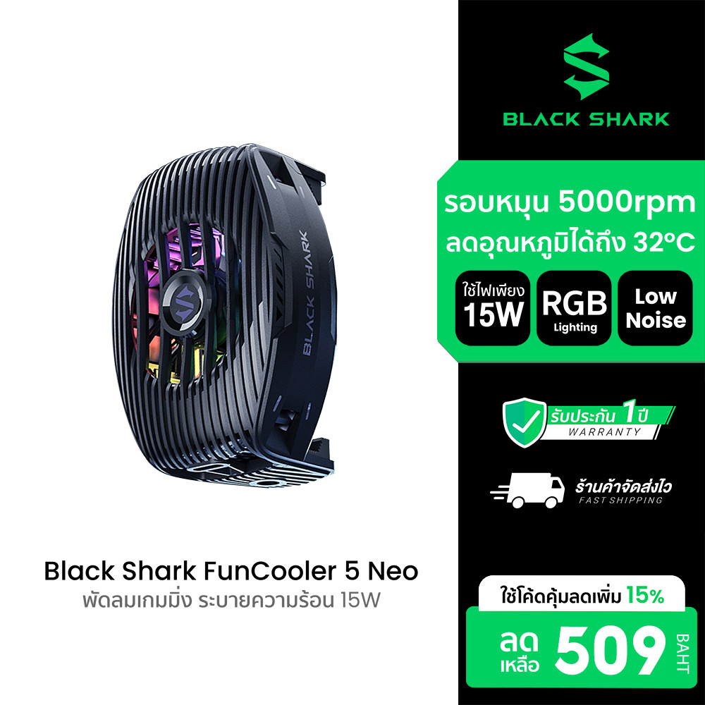 [ลดเหลือ 509] Black Shark FunCooler 5 Neo พัดลมระบายความร้อนมือถือ 15W ลดอุณหภูมิ รอบหมุน 5000rpm (Black) -1Y