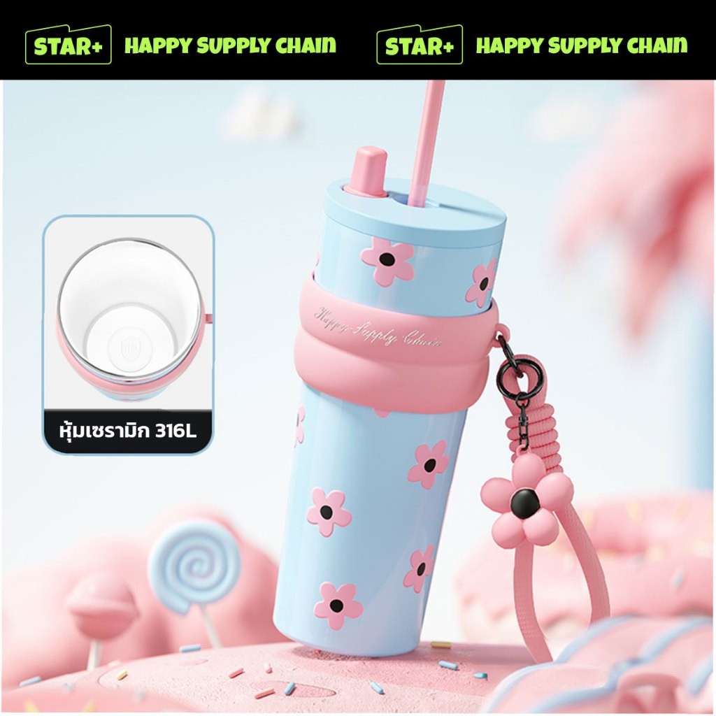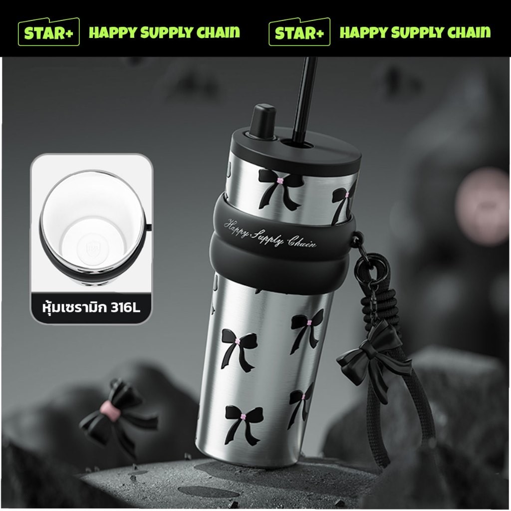 ✨แก้วนํ้าเก็บอุณหภูมิ แก้วเก็บความเย็น ขวดน้ํา ขนาด 710 ml เก็บความเย็นและร้อน ที่เก็บหลอดในตัว