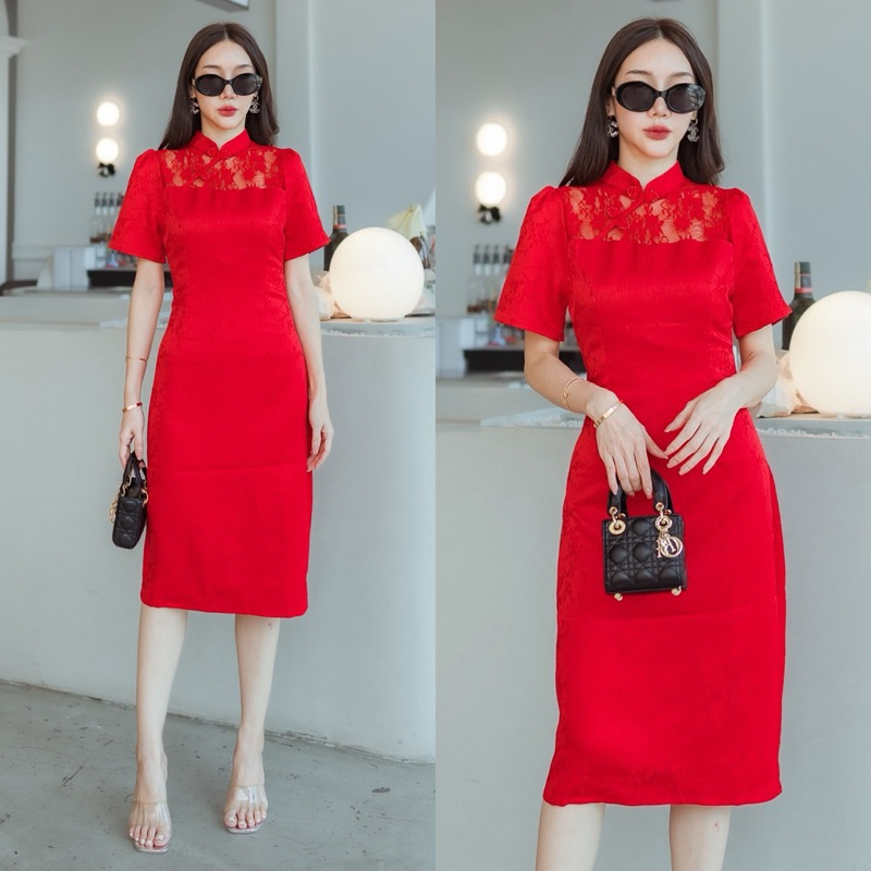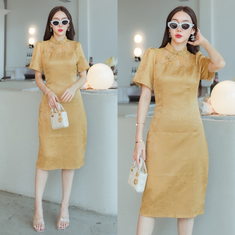 099 เดรสกี่เพ้าสไตล์ลัคชูรี่+พู่ห้อย (Chinese Dress)