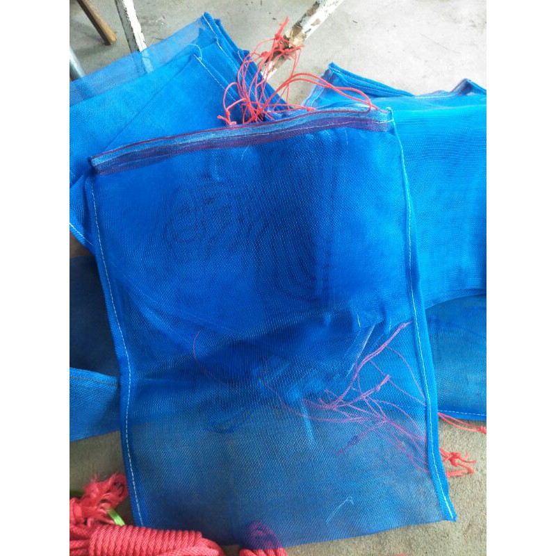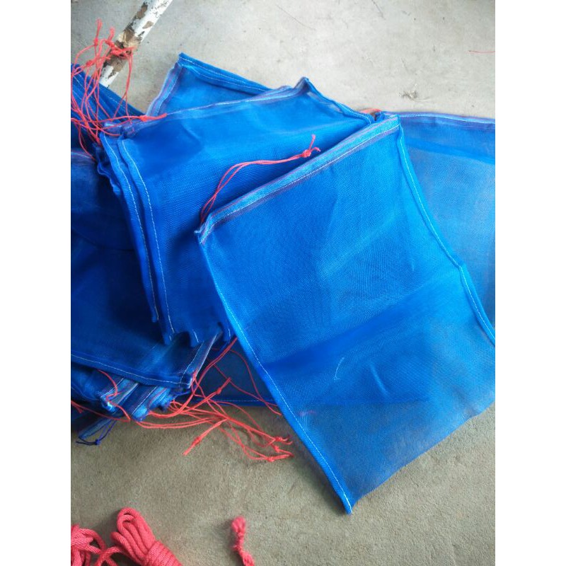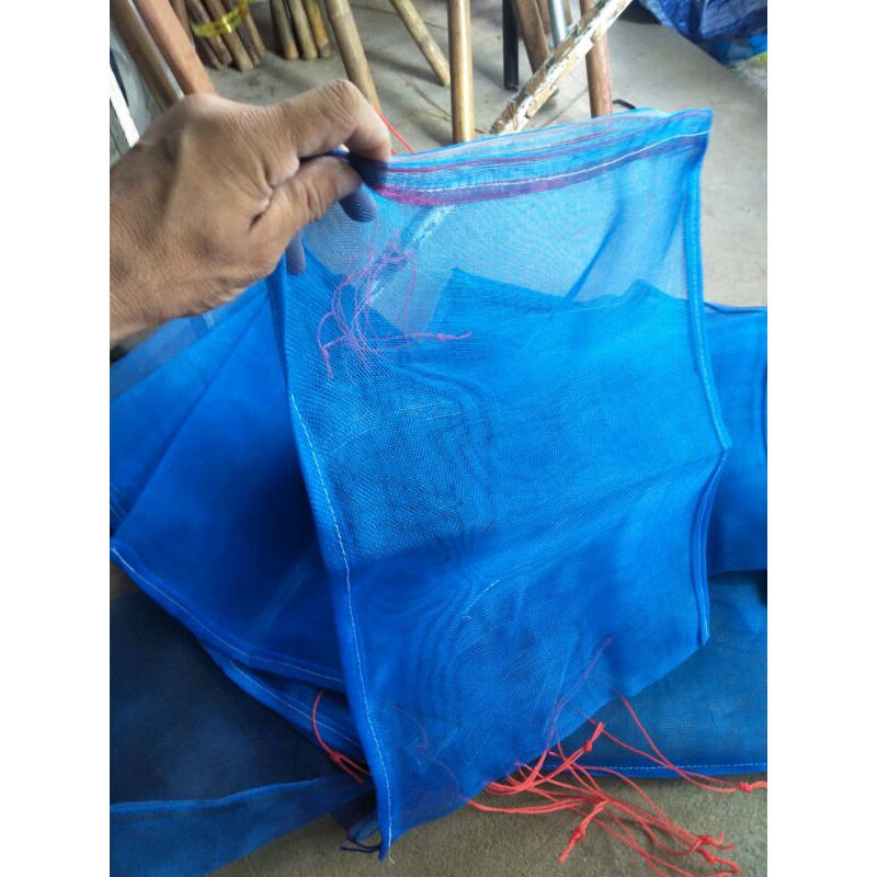 ถุงผ้าแยงใส่ปลาแบบผ้าเขียว เญ้บขอบให้เรียบร้อย