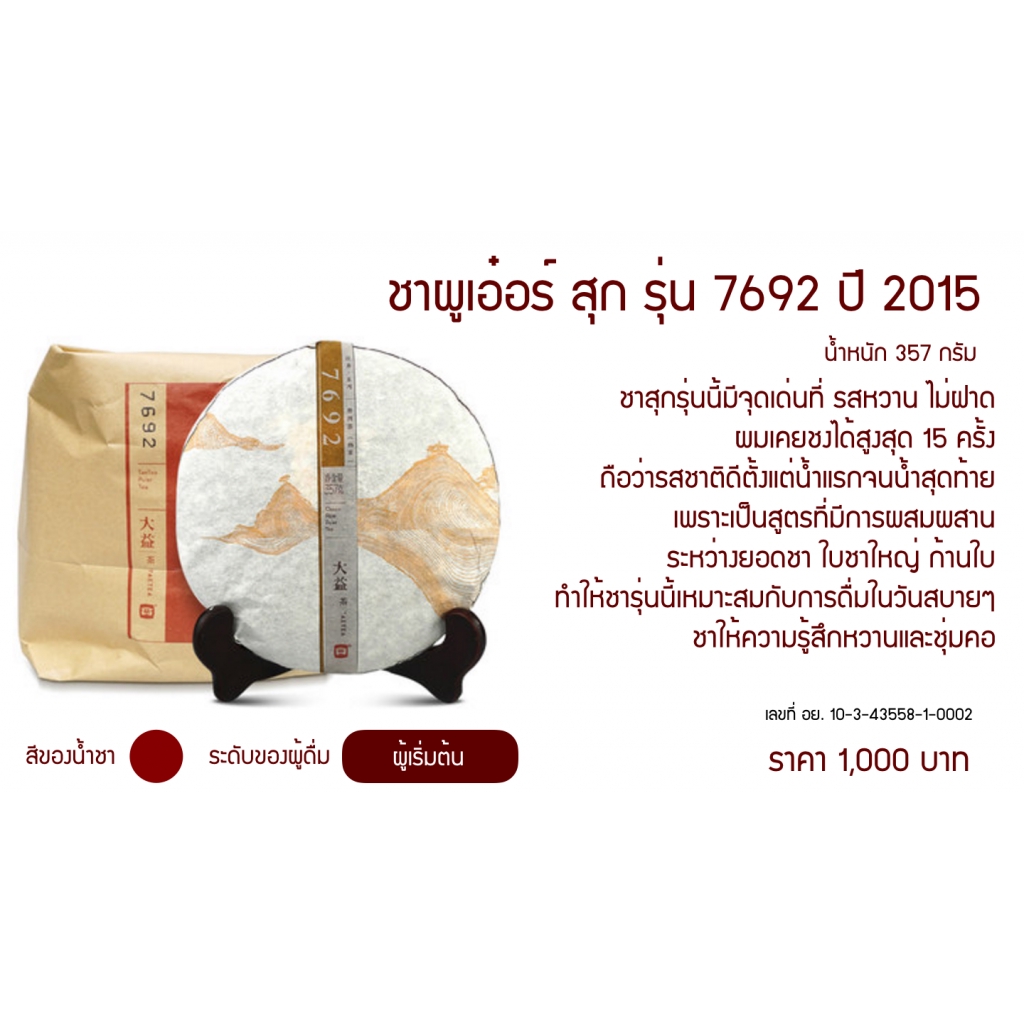 (B) ชาผู่เอ๋อร์ สุก ต้าอี้ รุ่น 7692 ปี 2015 น้ำหนัก 357 กรัม