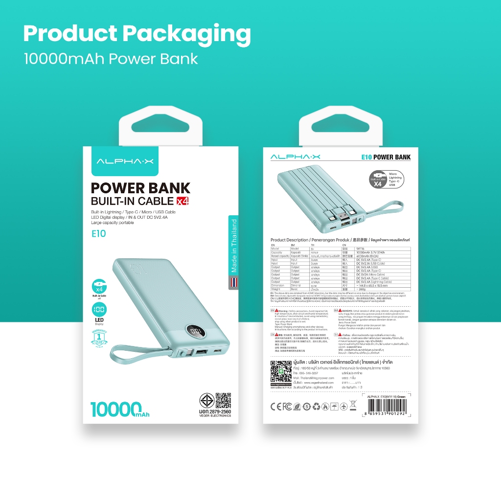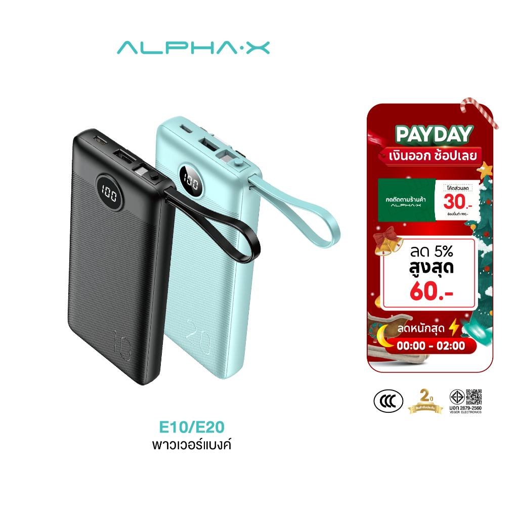 【CCC】ALPHA X รุ่นE10/E20 Power bank 10000 20000mAh สายชาร์จ 4 in1 ในตัว จอLED【รับประกัน 2ปี】