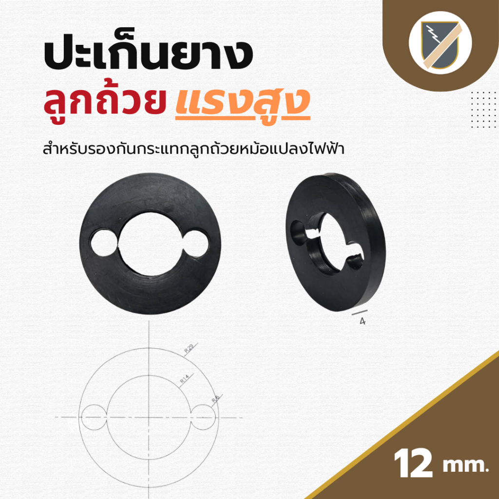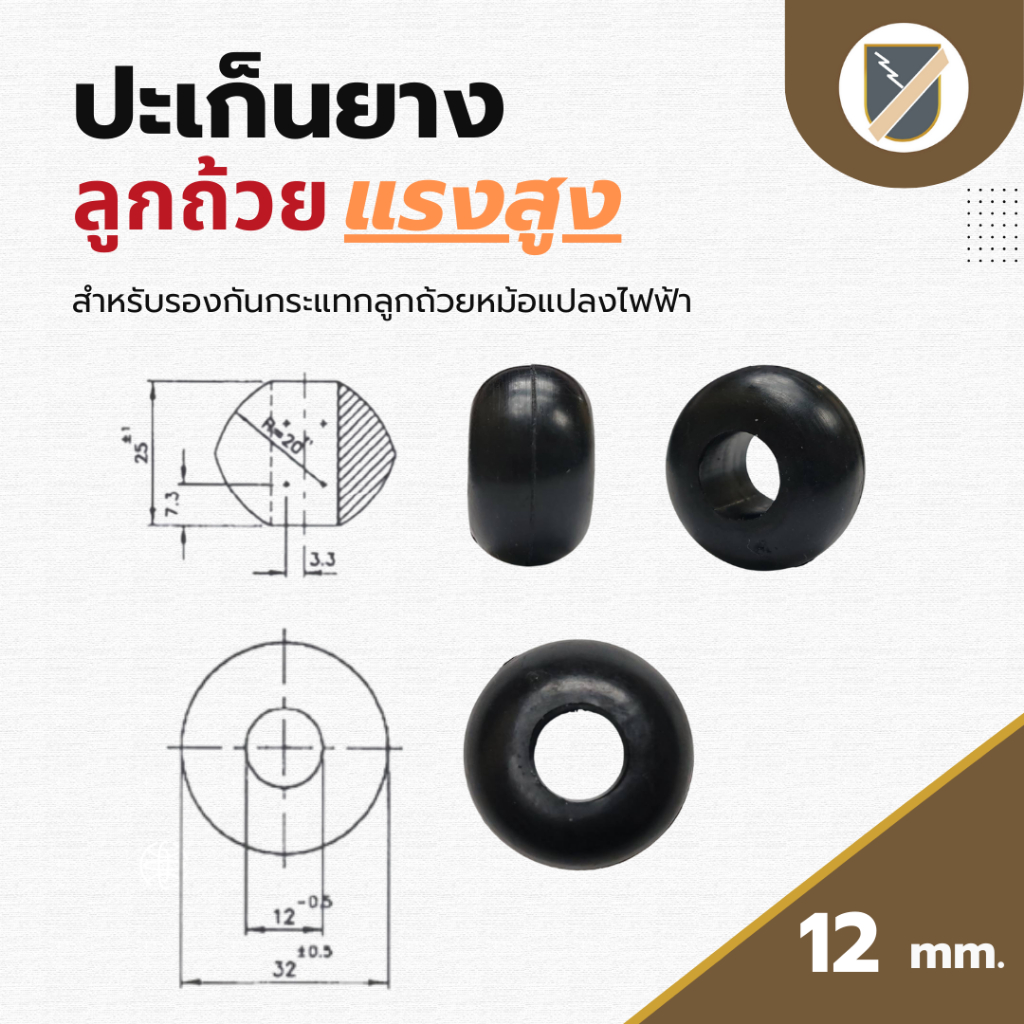 ปะเก็นยางลูกถ้วยไฟฟ้าแรงสูง 12 mm. ชุด 3 ชิ้น เหนียว ทนความร้อน