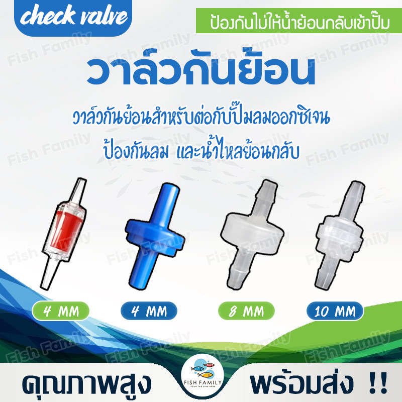 วาล์วกันย้อน check valve วาล์วกันน้ำย้อนกลับ 4mm/8mm/10mm แบบใส สีขาว