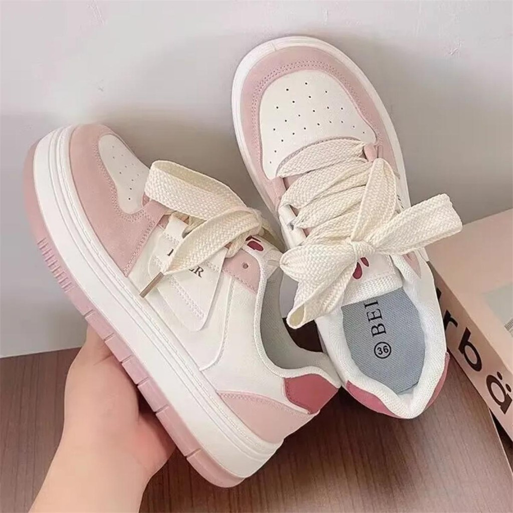 (พร้อมส่งจากไทย )รองเท้าผ้าใบผู้หญิง รองเท้าสีขาว ทนทาน รองเท้าผู้หญิงน่ารัก ระบายอากาศได้ดี ทรงน่ารัก #Q96 ไซส์ 35-44