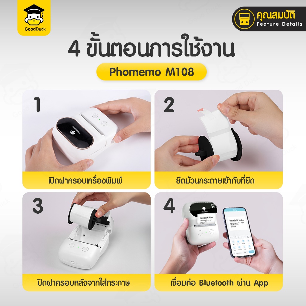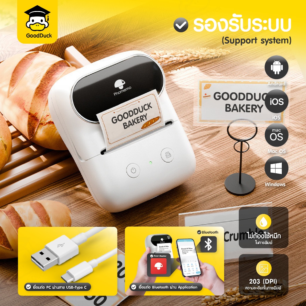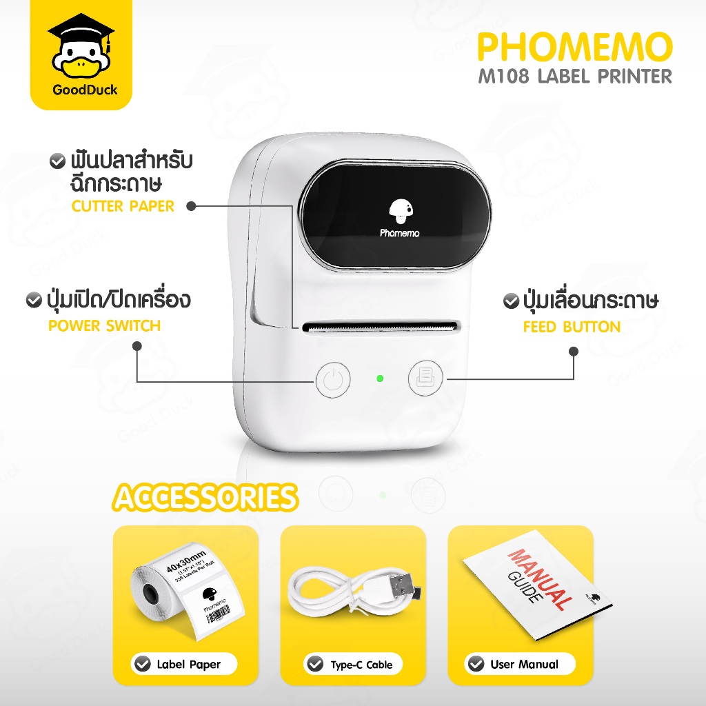เครื่องปริ้นพกพา เครื่องปริ้นสติ๊กเกอร์ Phomemo M108 ฉลาก เลเบล Mini Printer บลูทูธ เชื่อมต่อง่าย