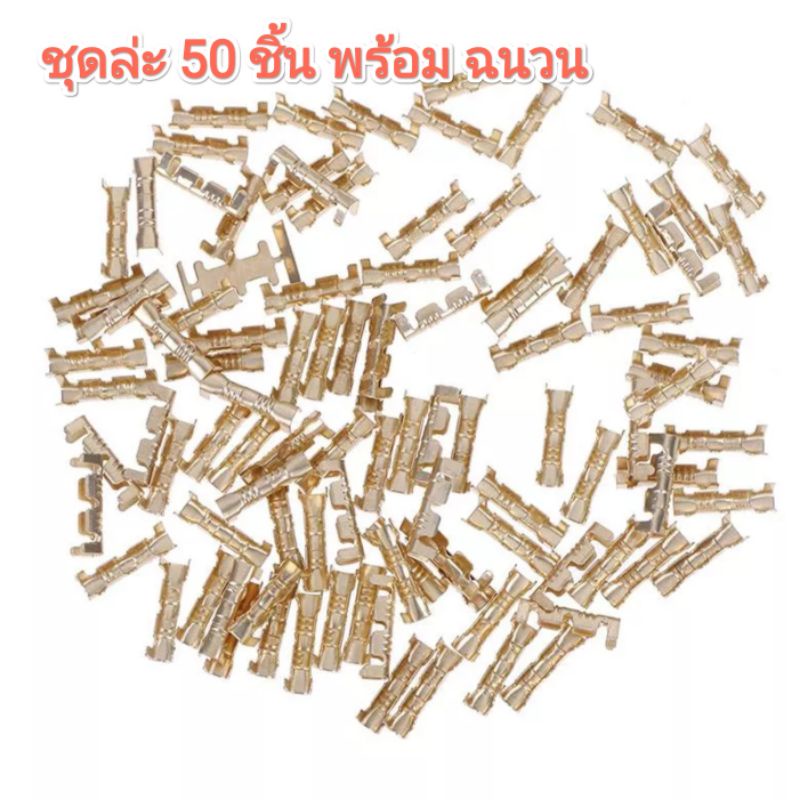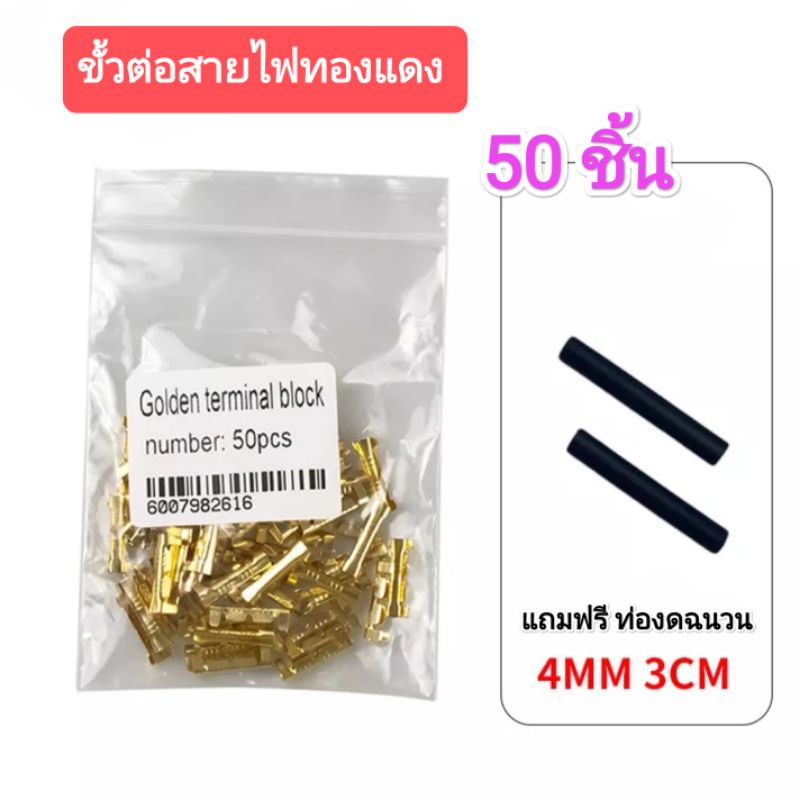 ( 50ชิ้น) ชุดขั้วต่อสายไฟทองแดงทองเหลือง 0.5-1.5 mm² จีบขั้วต่อสายไฟพร้อมฉนวนหุ้ม