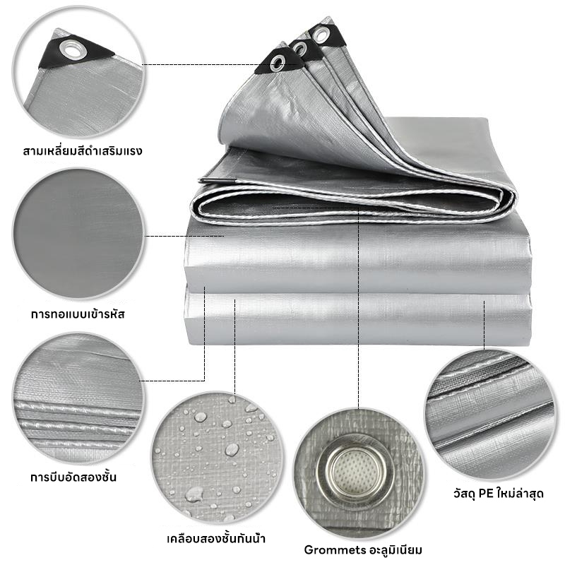 ผ้าใบกันฝน กันแดด ขนาด2x3 3x4 4x5 เมตร มีตาไก่ พลาสติก แบบเอนกประสงค์ คลุมรถได้ บลูชีท