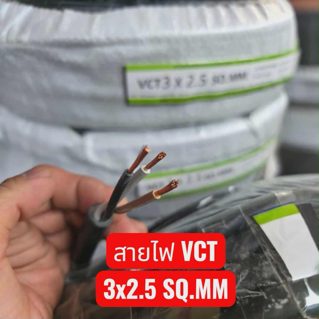 สายไฟVCT 3x2.5มาตราฐาน มอก.ม้วนเต็ม 100เมตร ม้วน50เมตร