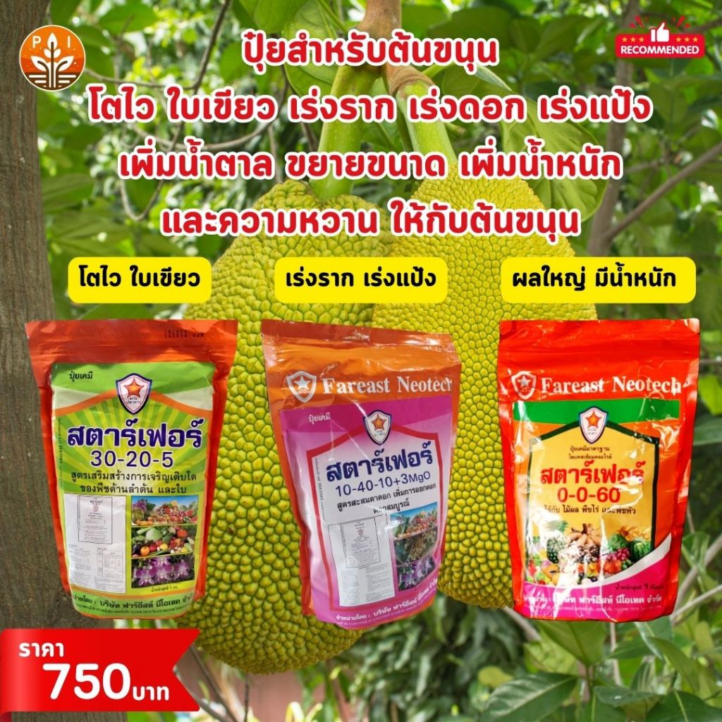 ขนุนผลใหญ่ ดอกเต็มต้น เร่งผล ขยายขนาด เพิ่มน้ำหนัก เพิ่มรสชาติ ด้วย ปุ๋ยสตาร์เฟอร์ 0-0-60 สูตร