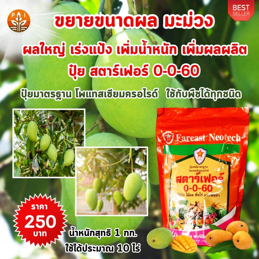 ปุ๋ยสตาร์เฟอร์ 0-0-60 สูตรเร่งผลมะม่วง ใหญ่ ดก เพิ่มน้ำหนัก คุณภาพดี
