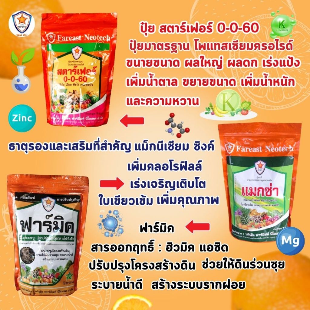 ส้ม ผลใหญ่ ผลดก ขยายขนาด เพิ่มน้ำหนัก เพิ่มคุณภาพ ผลผลิต ด้วย ปุ๋ยโพแทสเซี่ยมคลอไรด์ สตาร์เฟอร์ 0-0-60