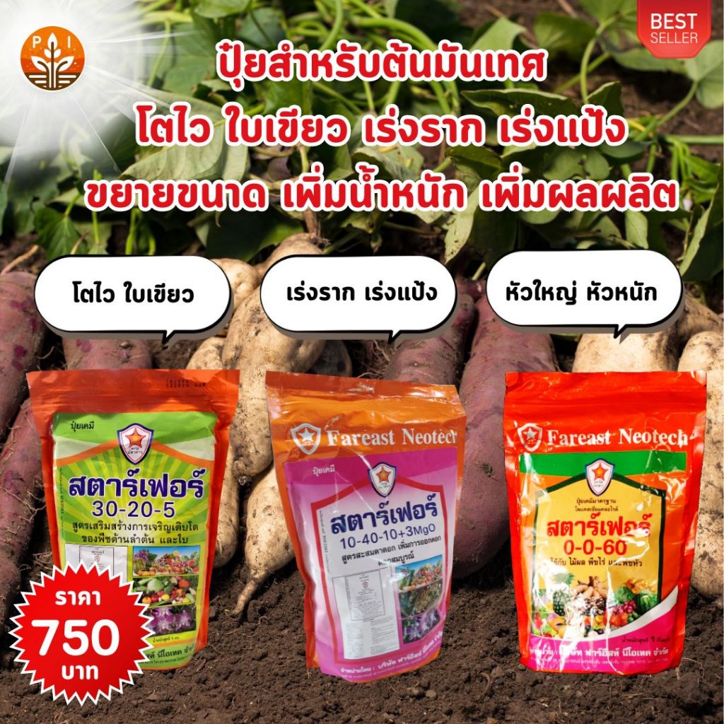 ปุ๋ยสตาร์เฟอร์ 0-0-60 เป็นตัวช่วยสำคัญในการเพิ่มผลผลิตมันเทศ หัวใหญ่ หัวดก ช่วยให้ก็บเกี่ยวผลผลิตได้มากขึ้น คุณภาพดีขึ้น